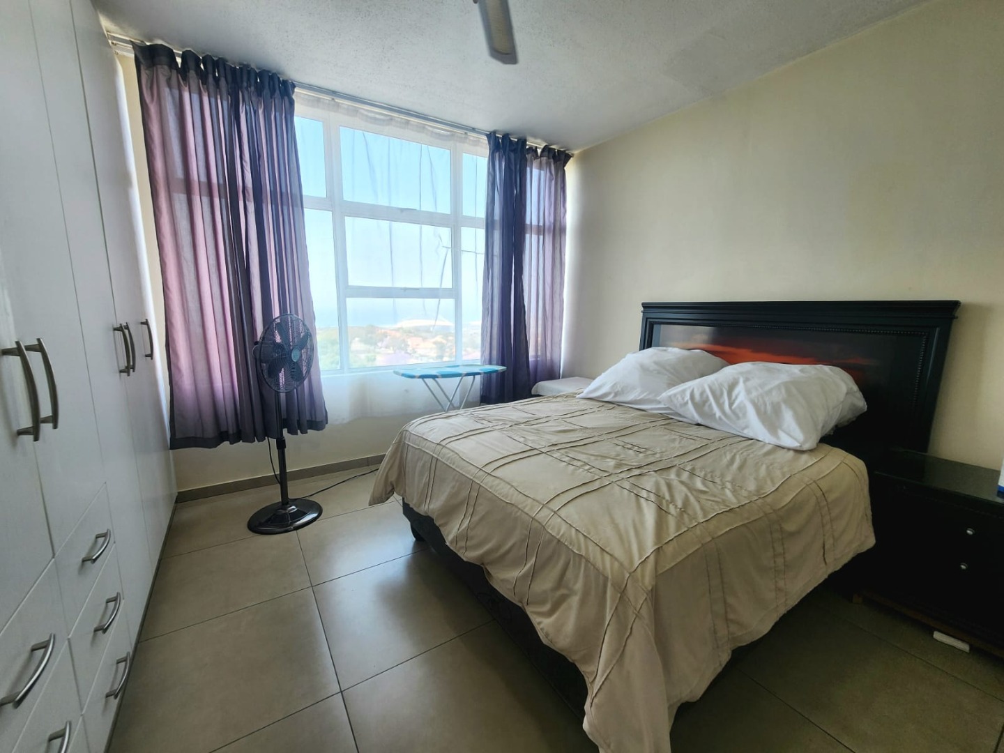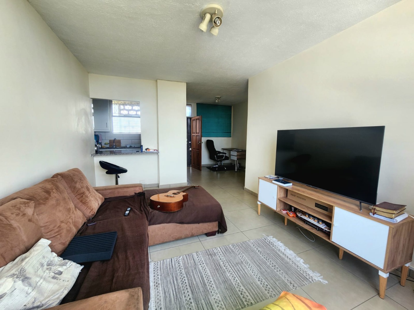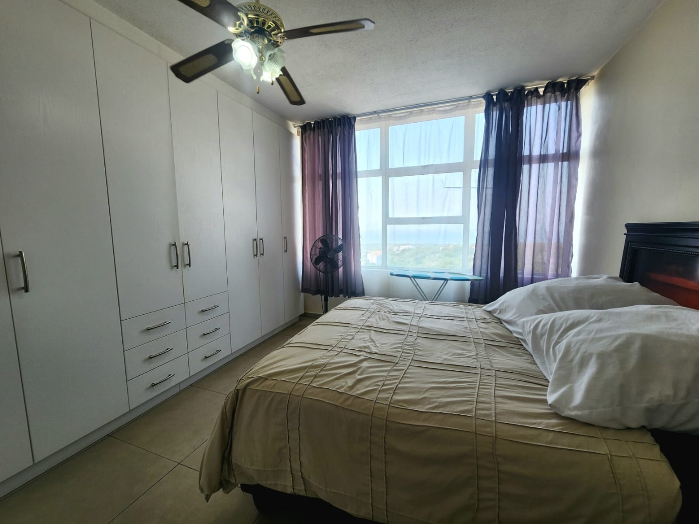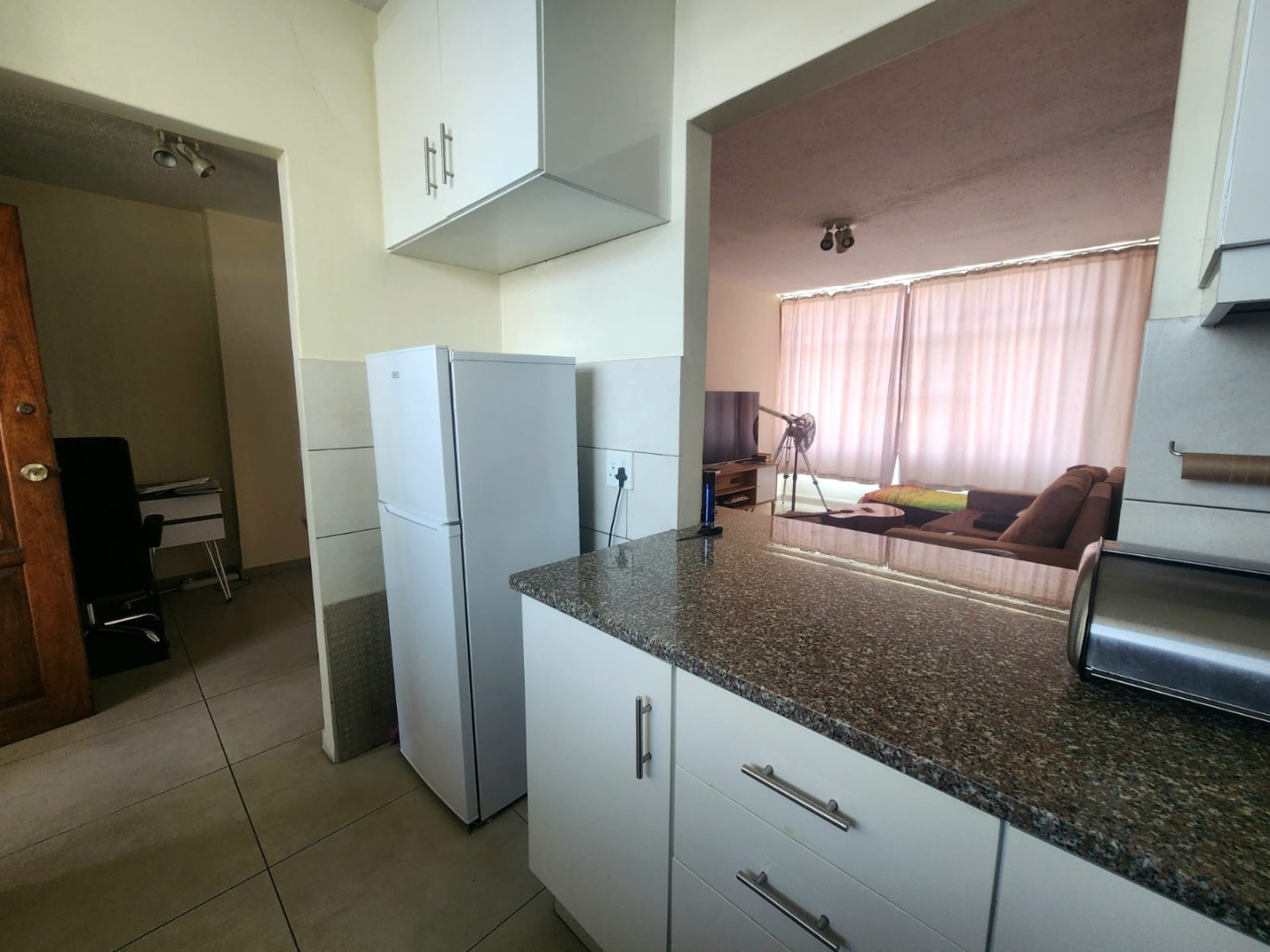 Both bedrooms come with built-in cupboards, providing ample storage space. The kitchen is well-equipped with plenty of cupboards, an under-counter oven, hob, and extractor fan. The entire apartment is tiled throughout for easy maintenance and a clean, modern feel.