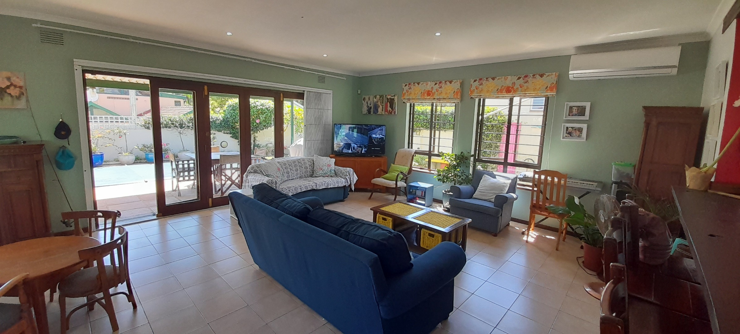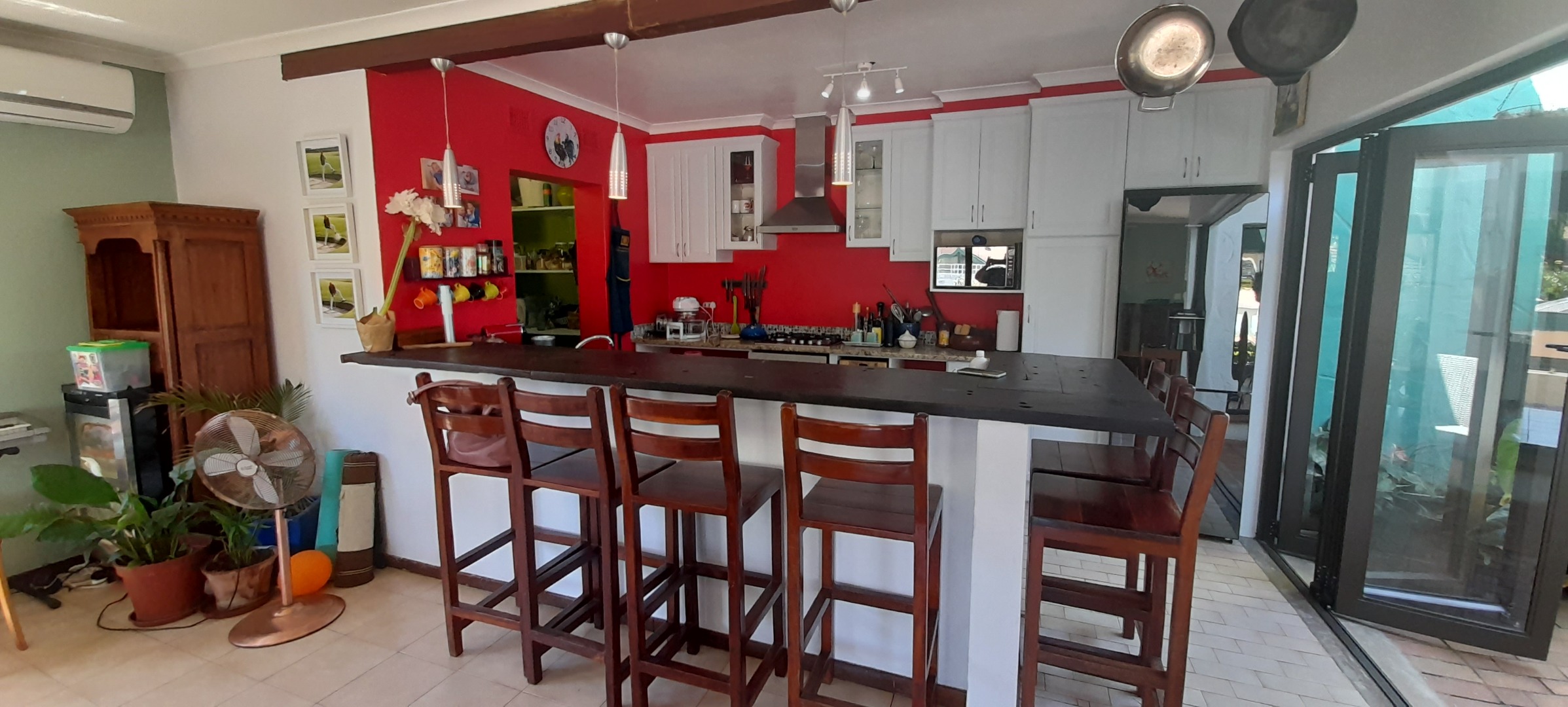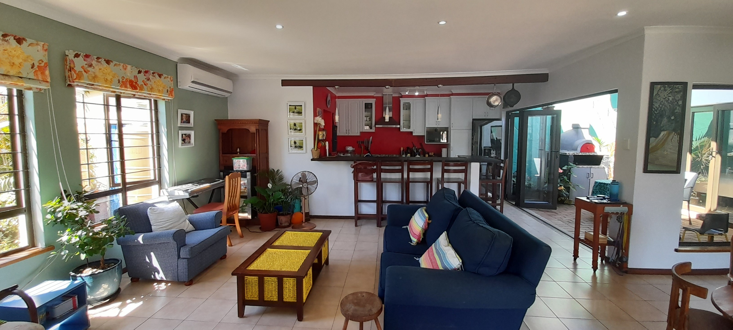Open-plan Lounging and Dining Area that flows off the Kitchen, leads out onto a Patio. The Kitchen is has a separate Scullery and Laundry Area with a Breakfast-nook. Enjoy air conditioning throughout, ensuring comfort.