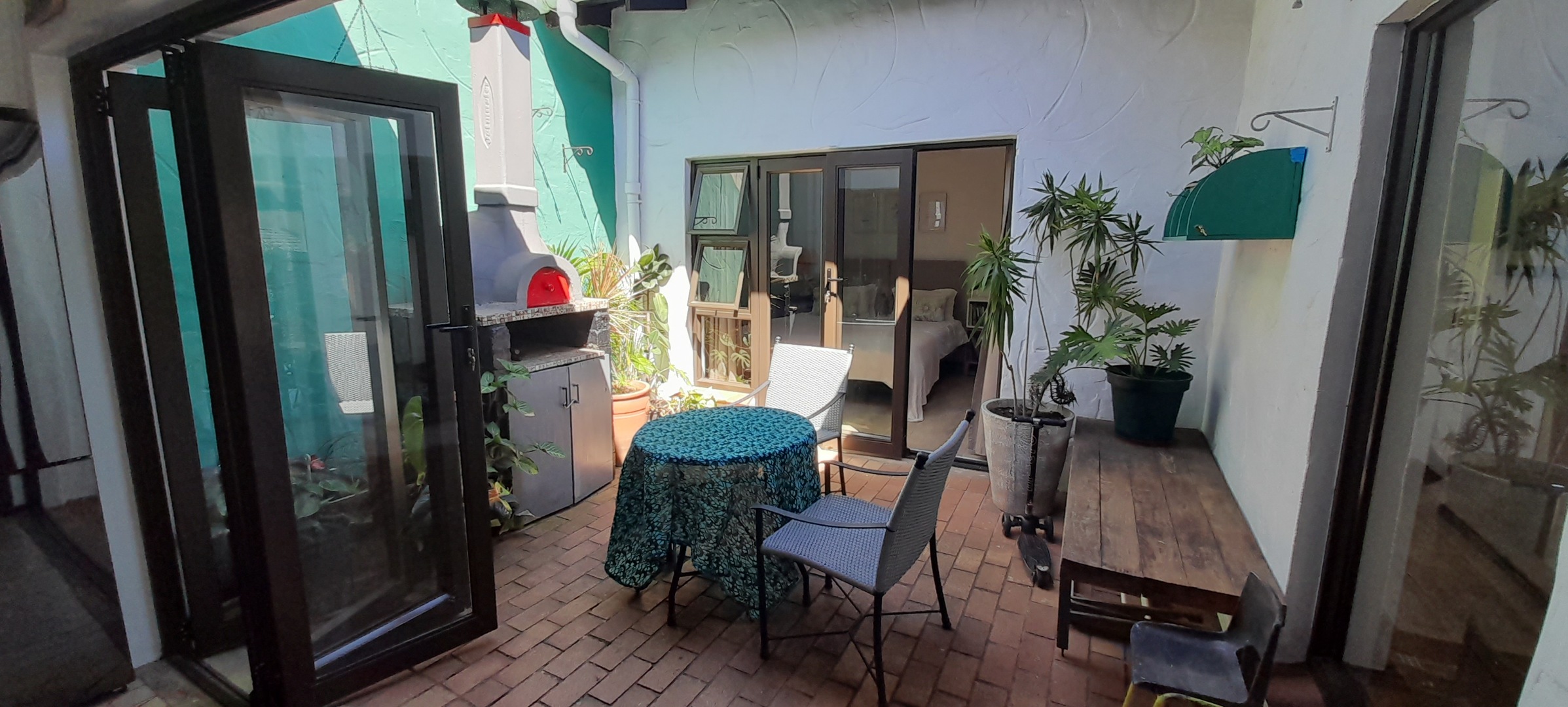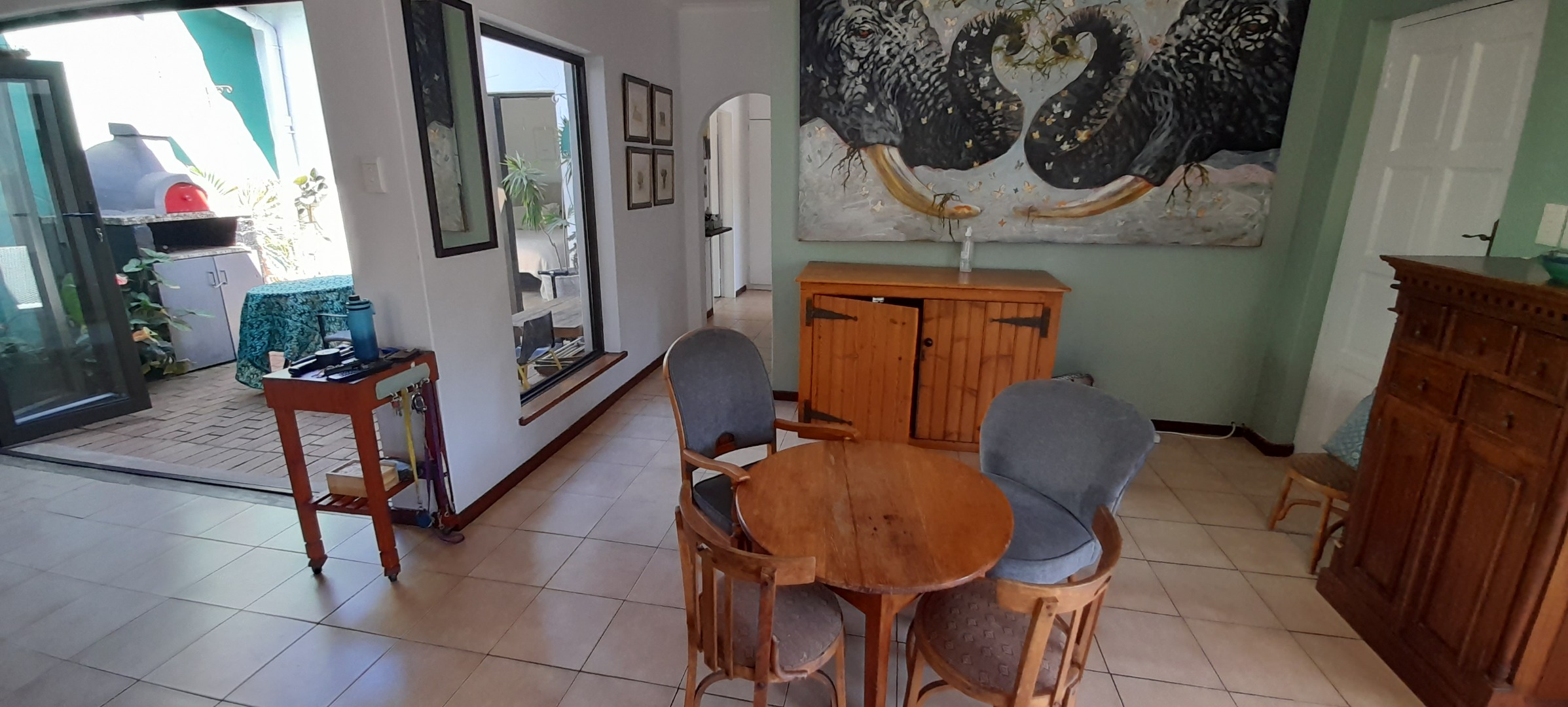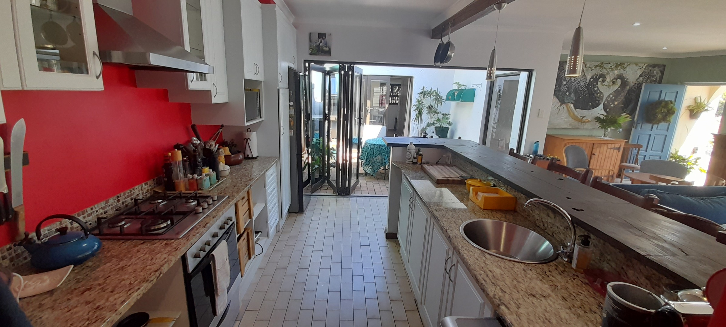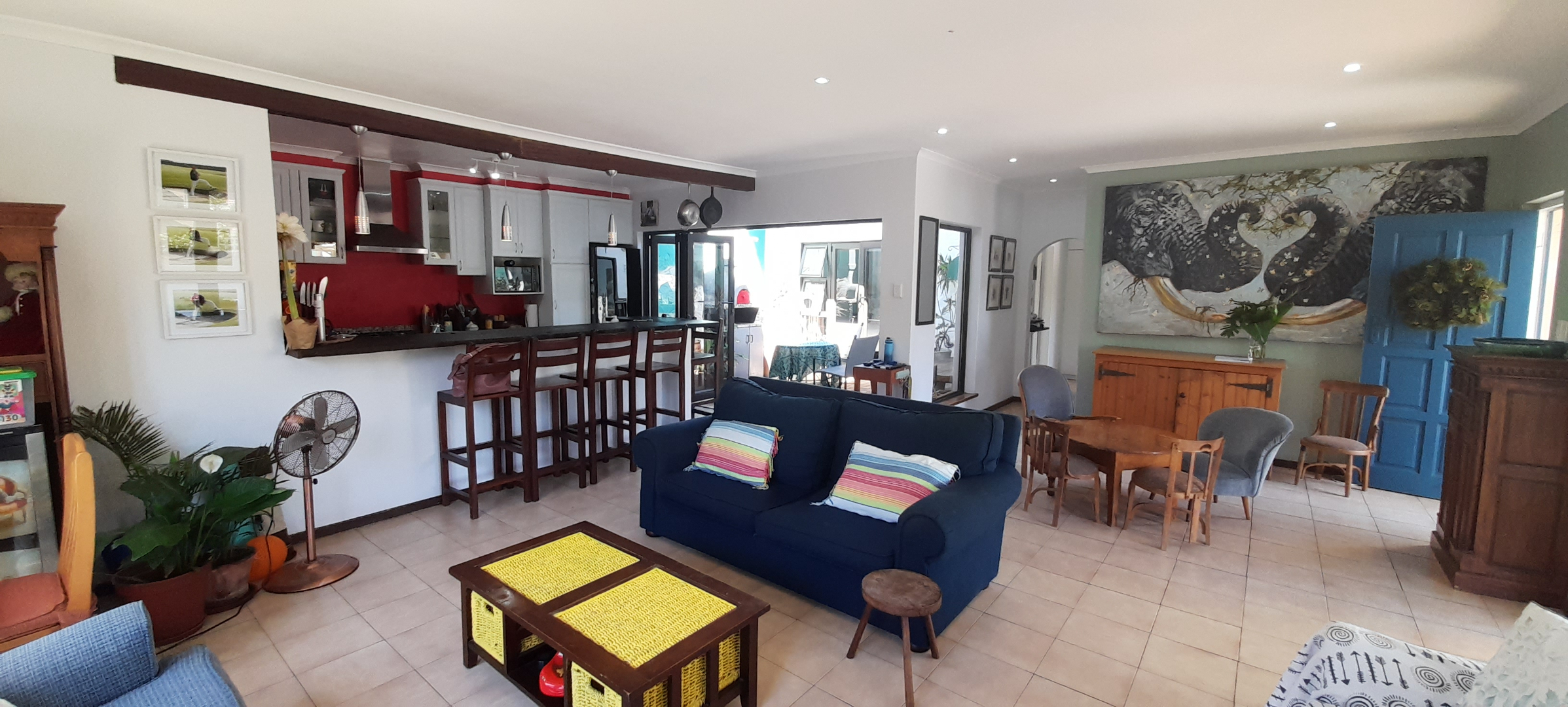 Open-plan Lounging and Dining Area that flows off the Kitchen, leads out onto a Patio. The Kitchen is has a separate Scullery and Laundry Area with a Breakfast-nook. Enjoy air conditioning throughout, ensuring comfort.