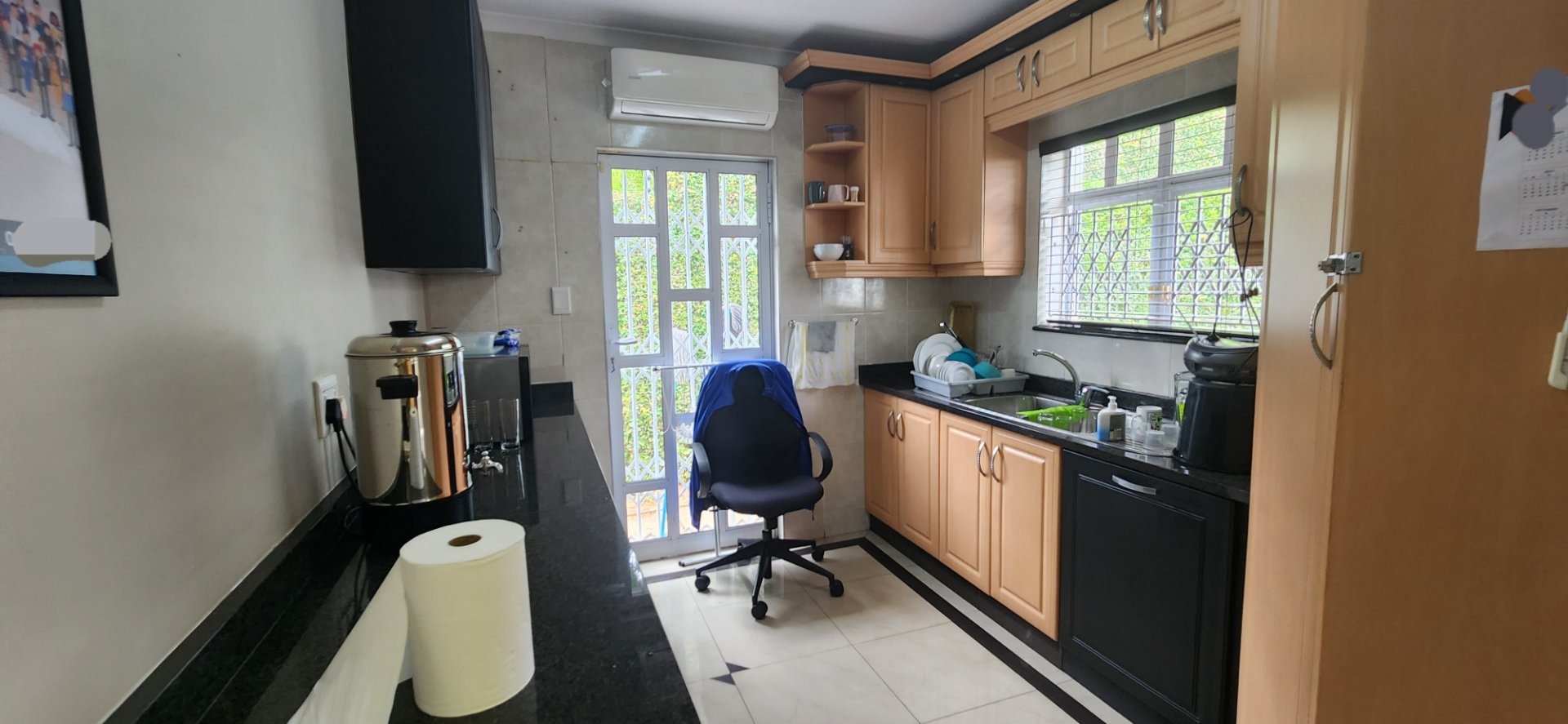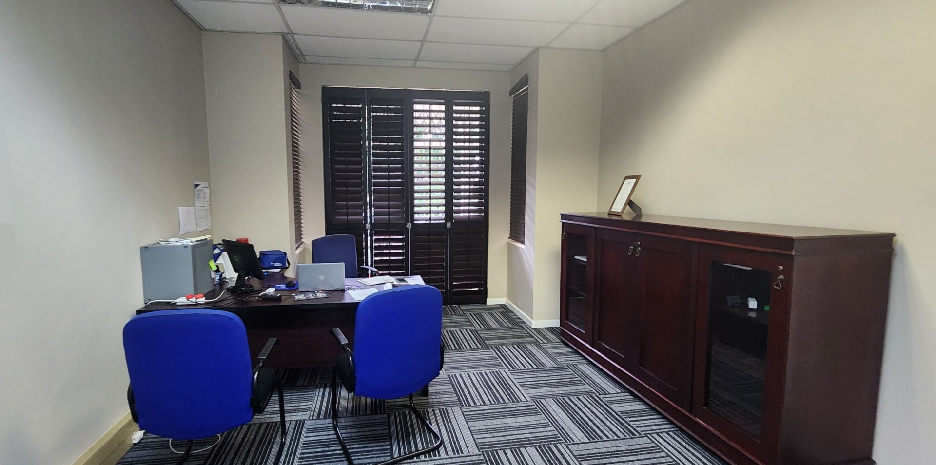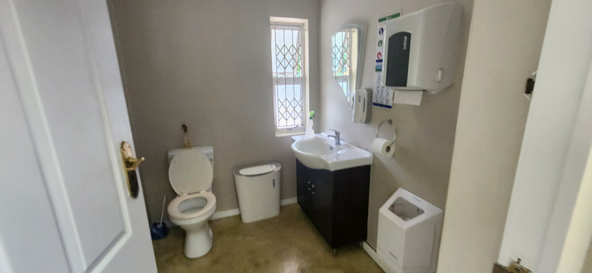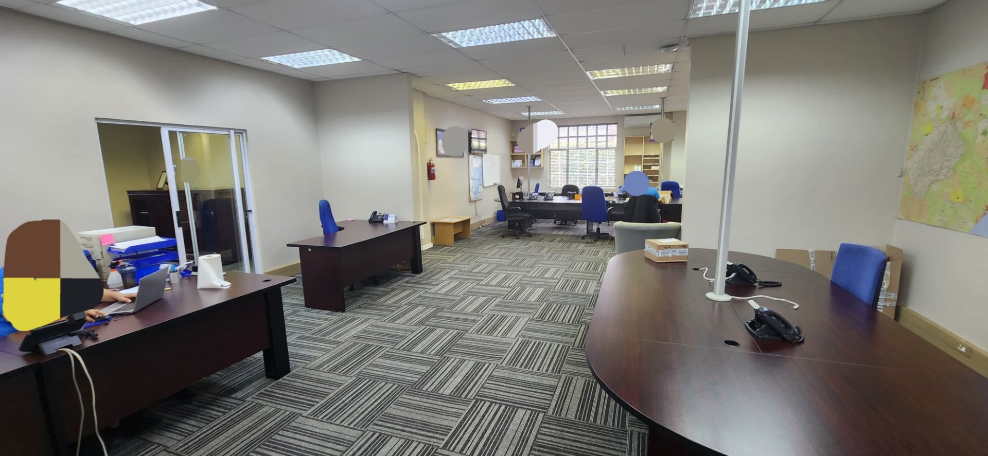 The front of the building opens into a small reception with a boardroom leading off this. The passage leads into a smart private office and a large open plan work area . This can be further partitioned. There is another individual office at the back plus a server room. There is a male and female ablution and a kitchen. There are 3 outside storerooms. 2 of these can be converted back to garages.