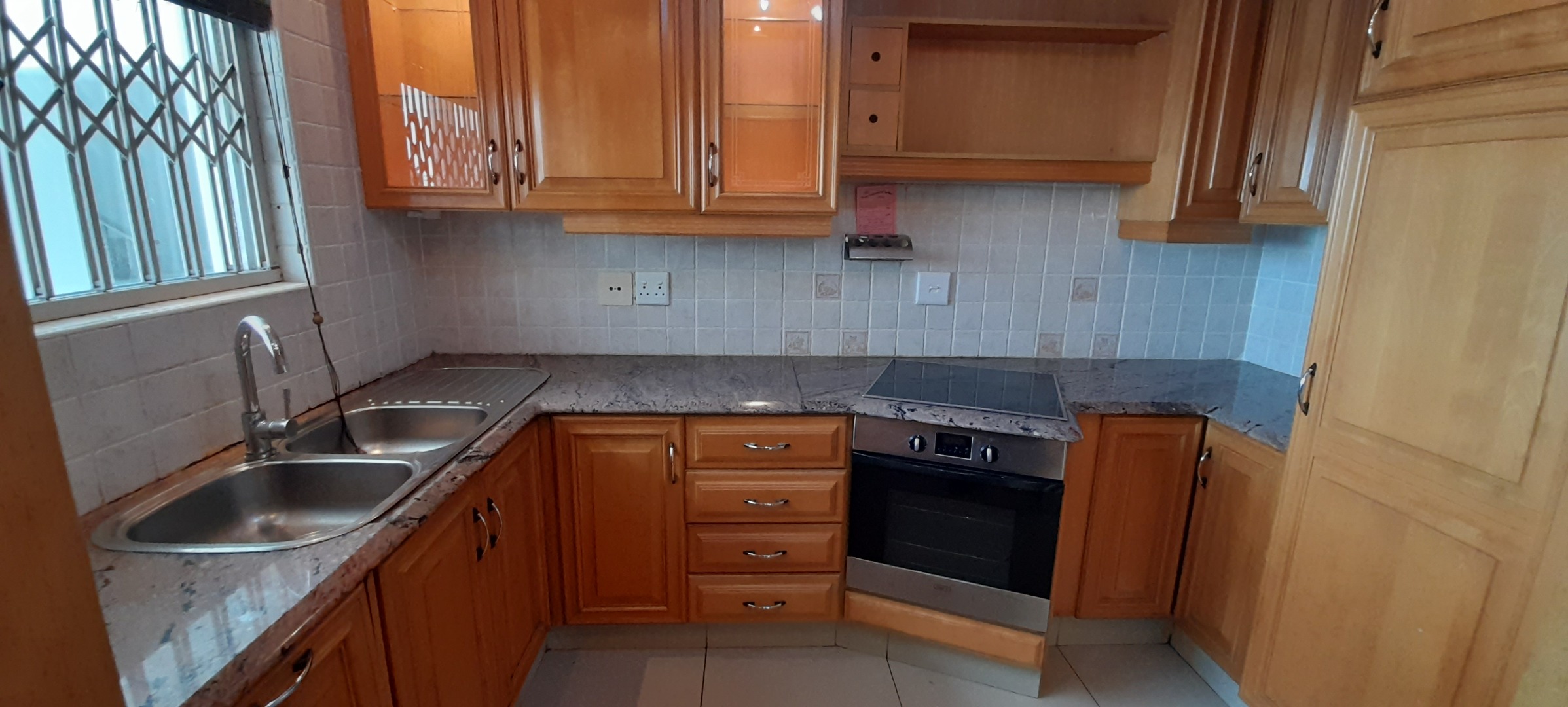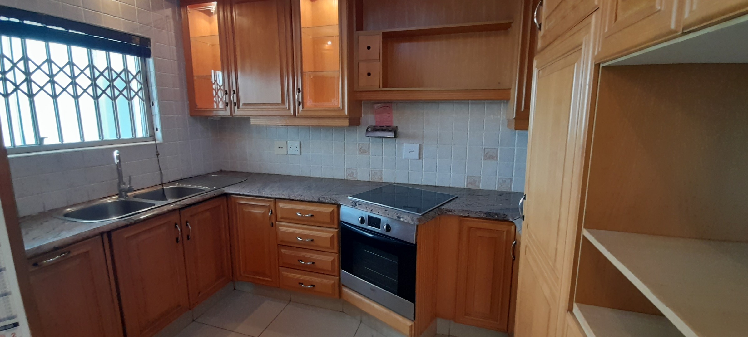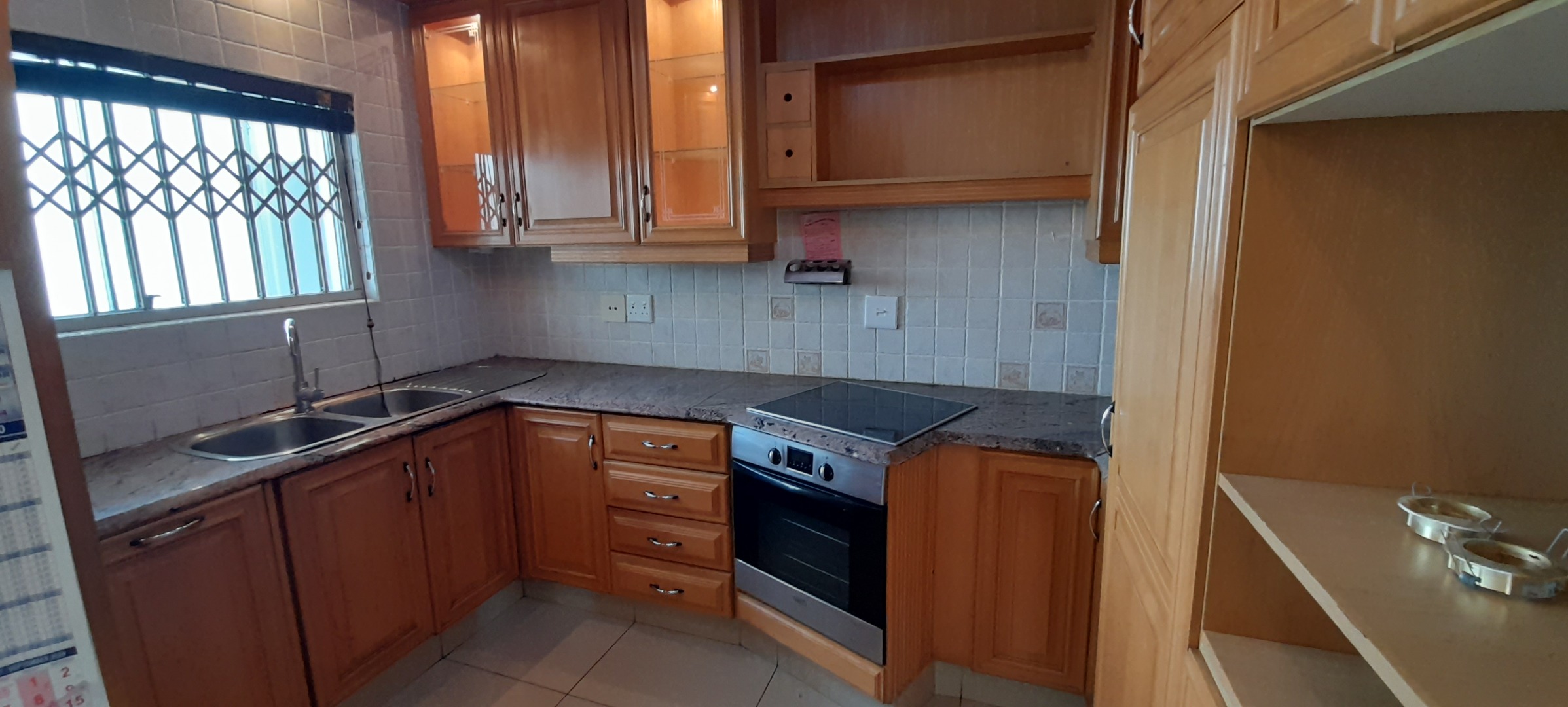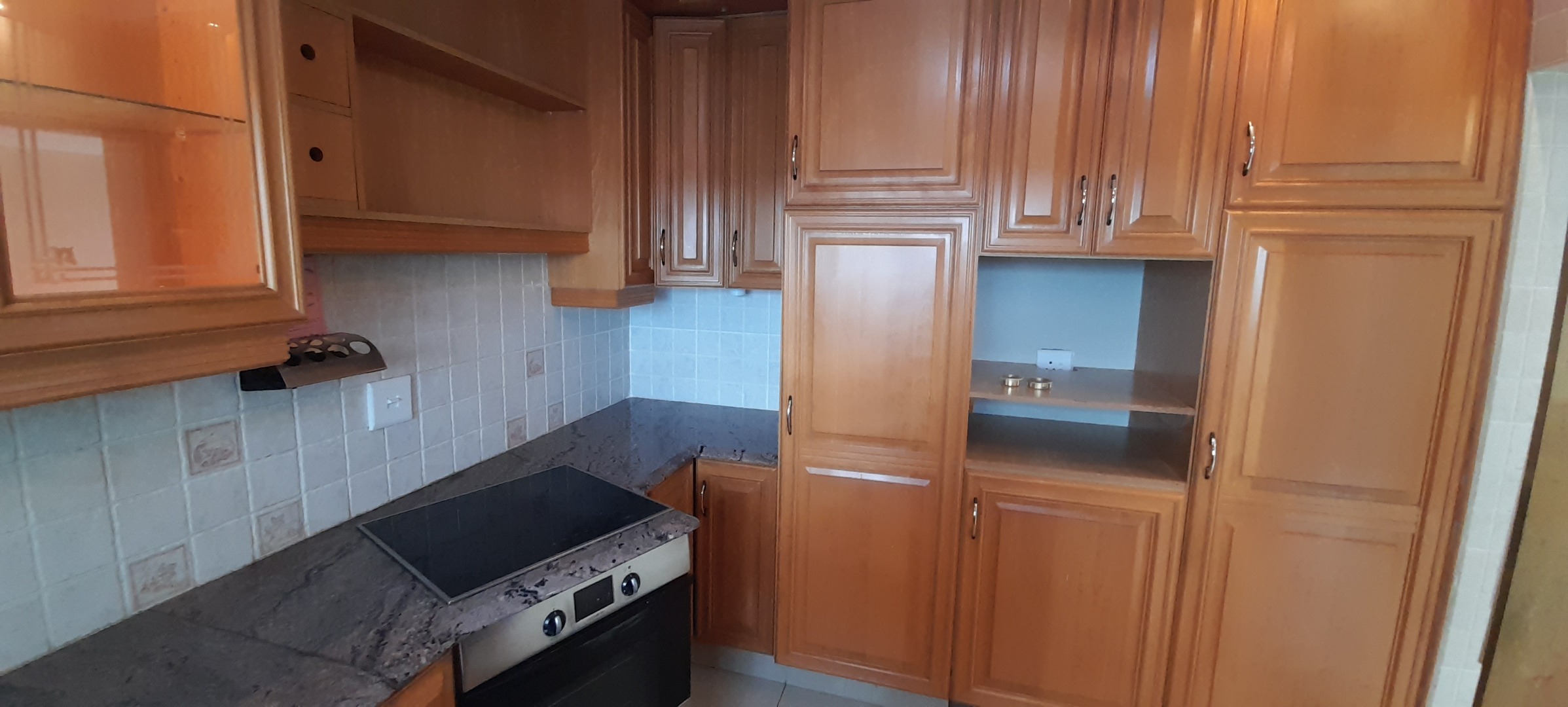 Three Bedrooms which has ample Built-in-Cupboards, wo Bathrooms of which one is an En-suite and the Second Bathroom has a separate Toilet. Open-plan Lounge and Dining Room Area that leads out onto an Open Balcony. Kitchen with ample Solid Wooden Cupboards.
