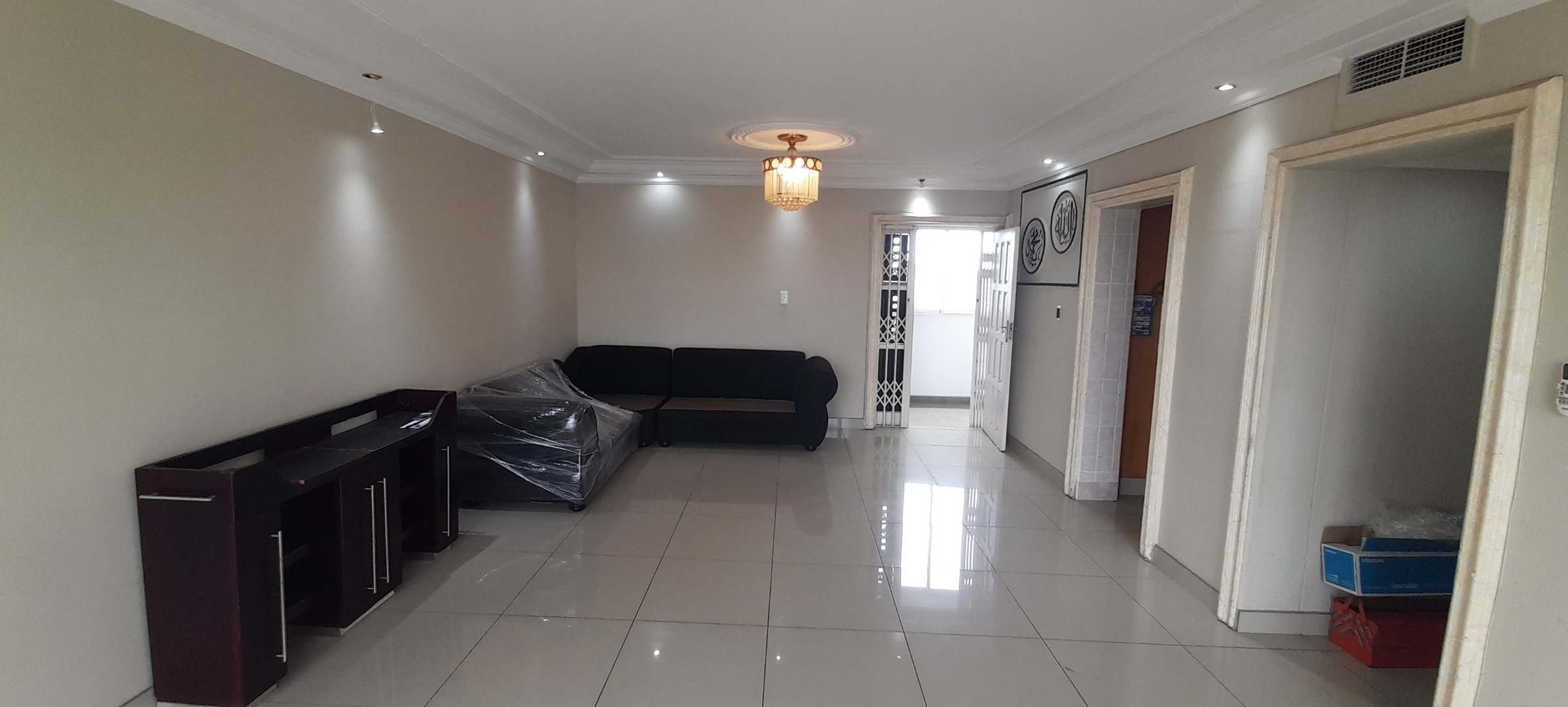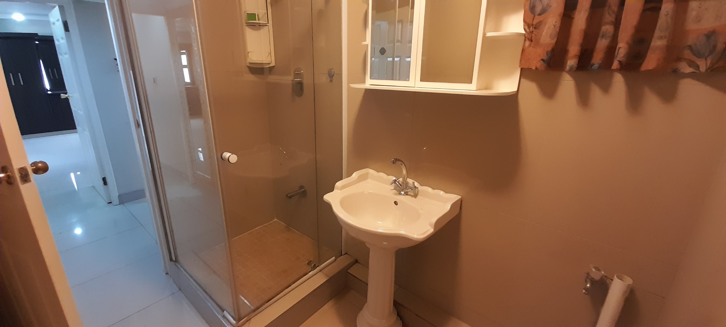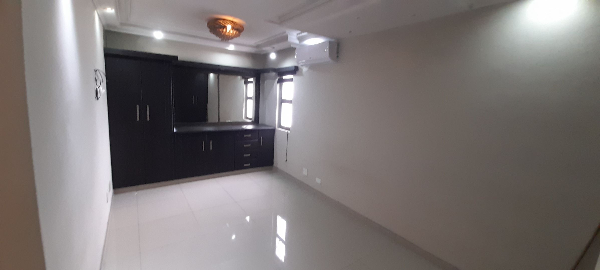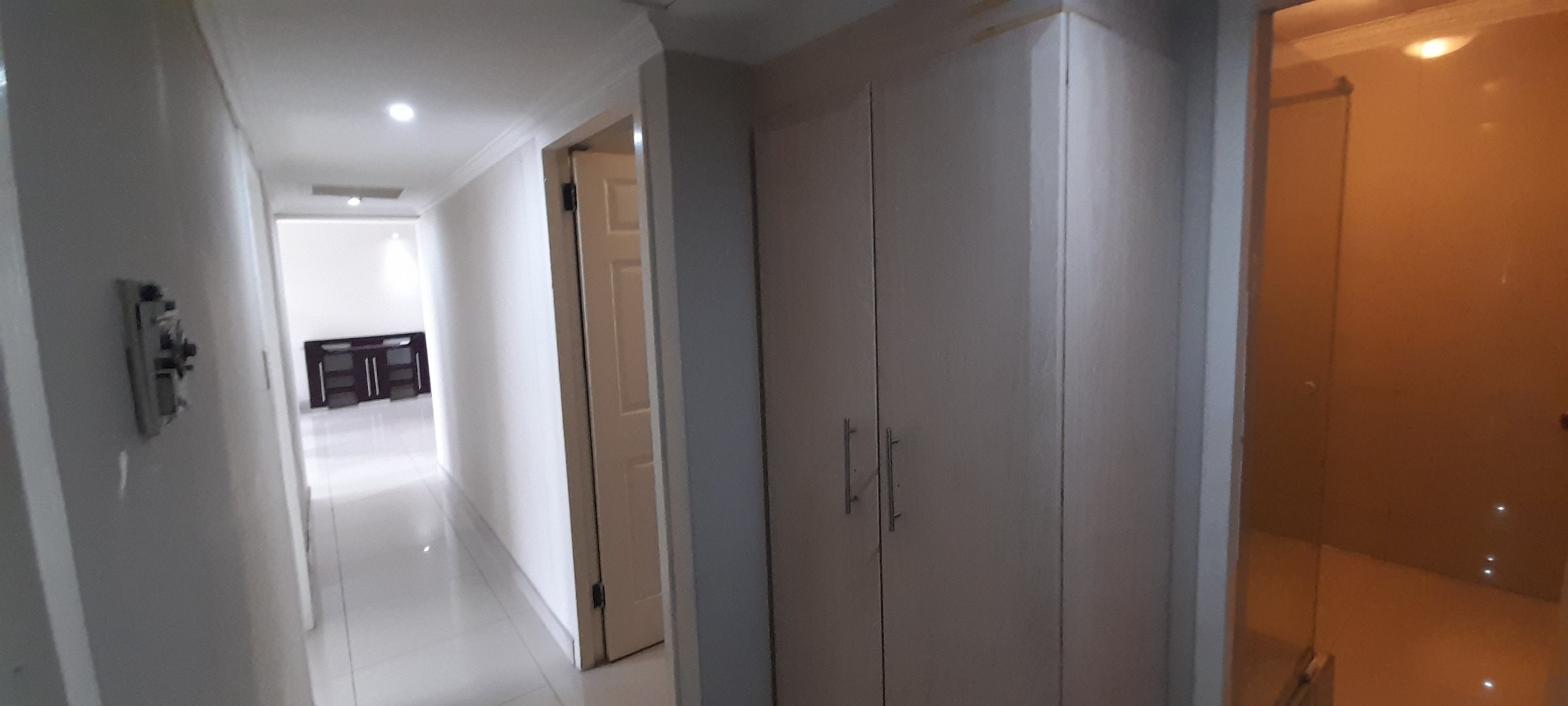 Three Bedrooms which has ample Built-in-Cupboards, wo Bathrooms of which one is an En-suite and the Second Bathroom has a separate Toilet. Open-plan Lounge and Dining Room Area that leads out onto an Open Balcony. Kitchen with ample Solid Wooden Cupboards.