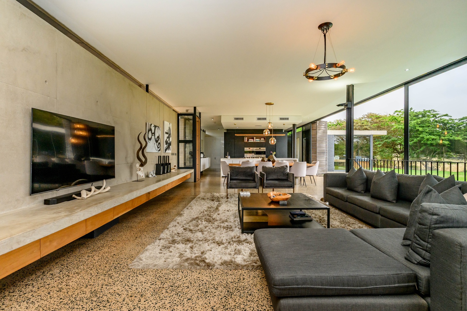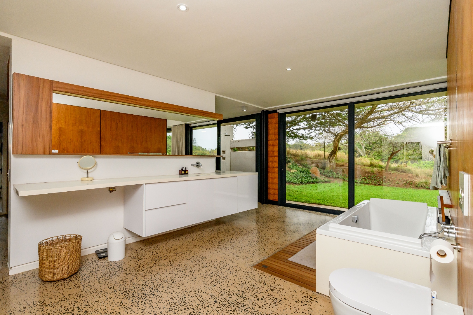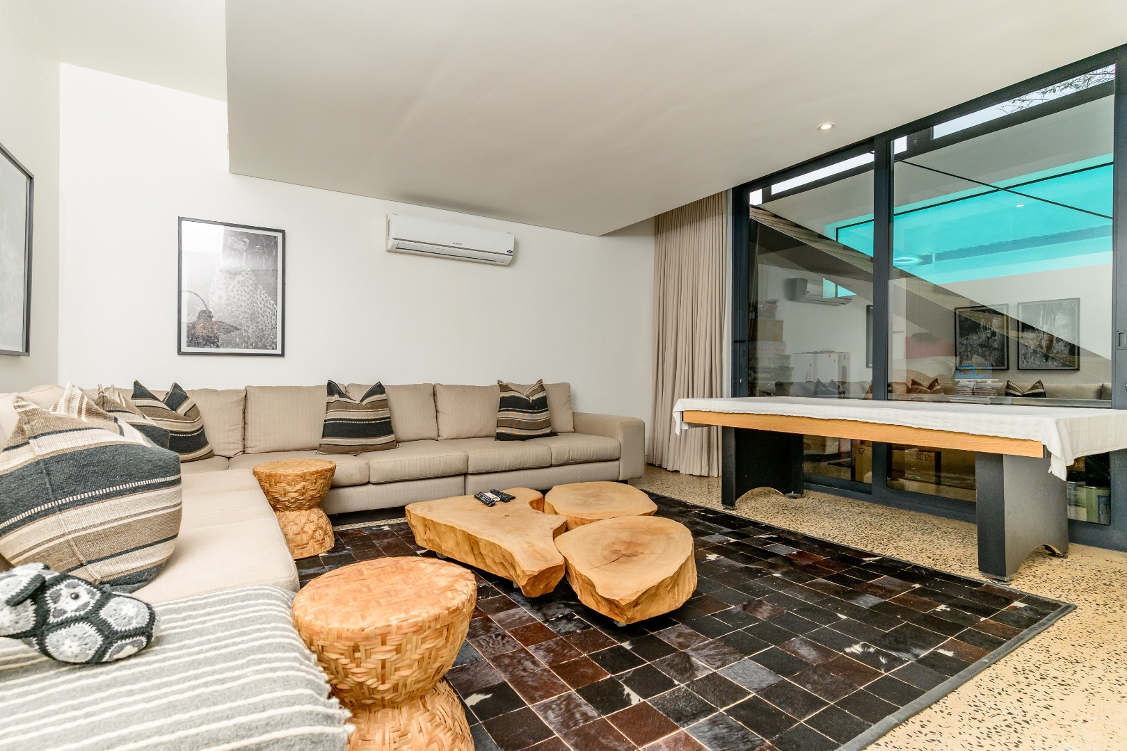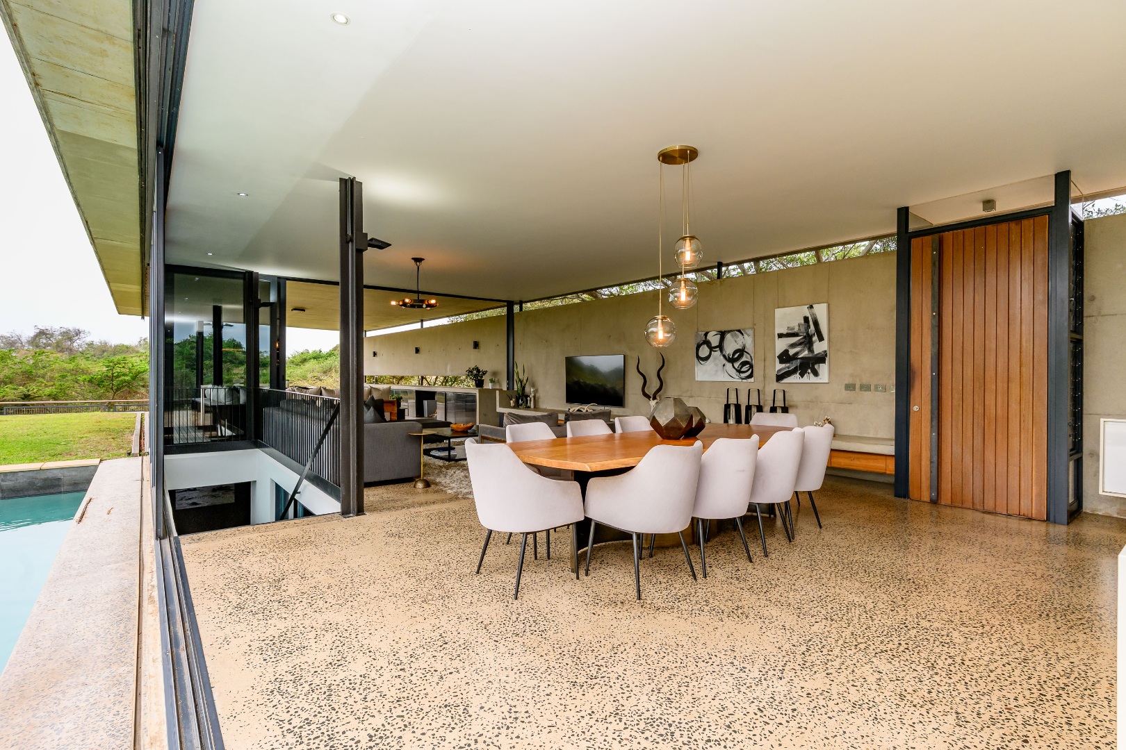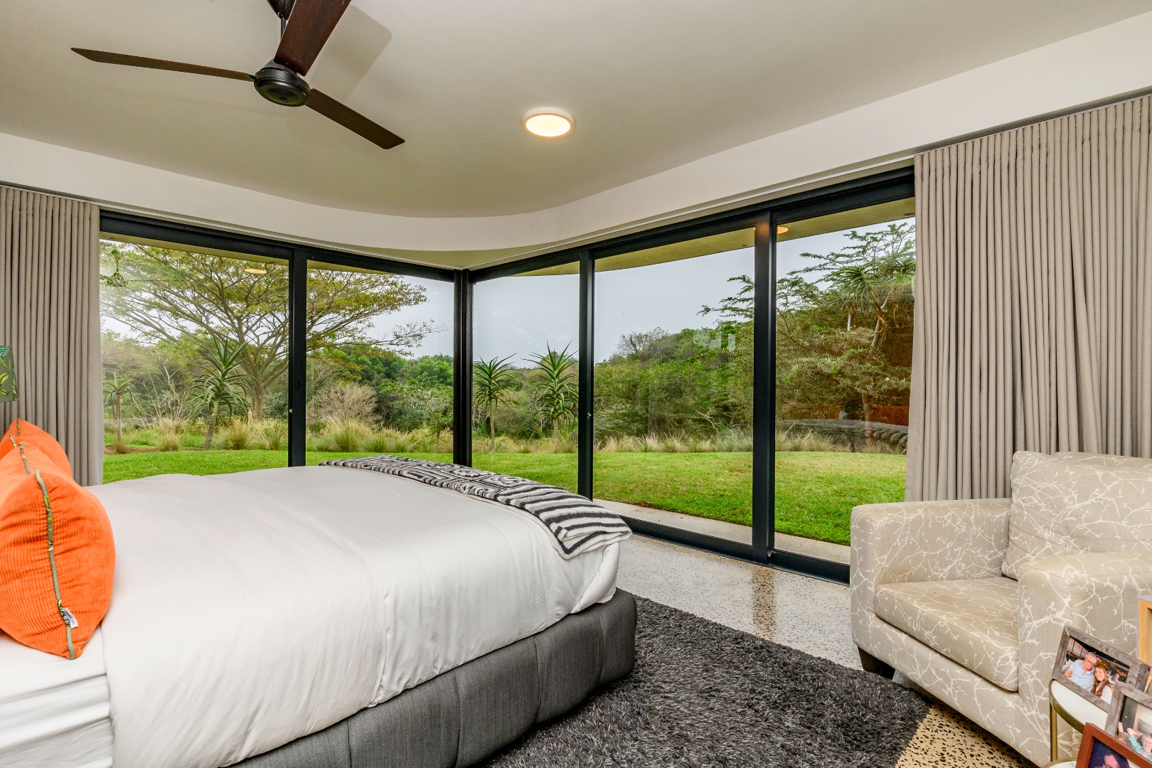From the moment you enter, expansive glass windows frame the natural bushveld outlook, filling the home with light and bringing the outdoors in. Designed with space and flow in mind, the open-plan living areas connect seamlessly to a large covered outdoor entertainment space — ideal for alfresco dining, relaxing, or hosting friends and family.