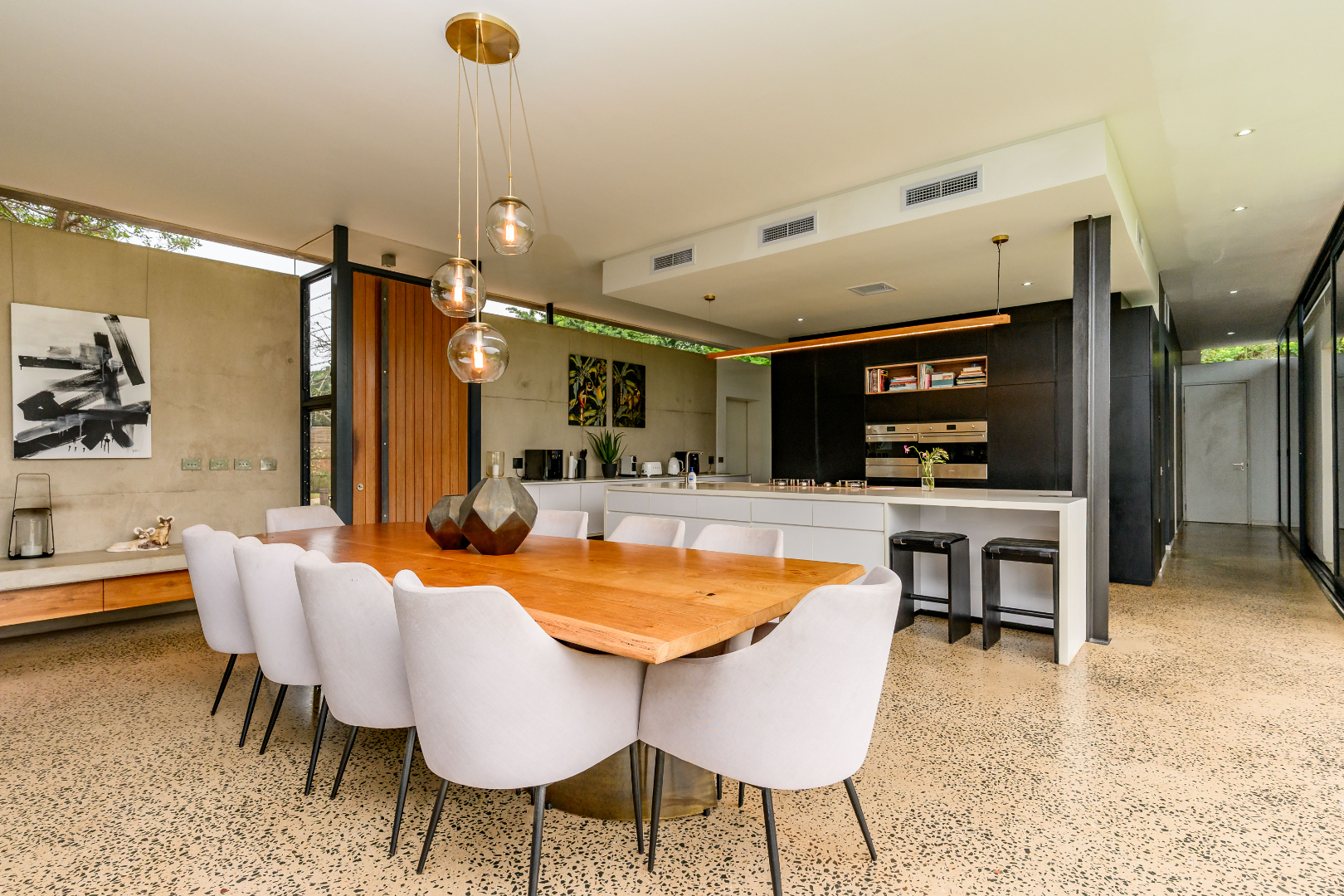 The well-appointed kitchen will delight culinary enthusiasts, featuring a practical scullery and ample preparation and storage space — equally suited to everyday family meals or entertaining guests.