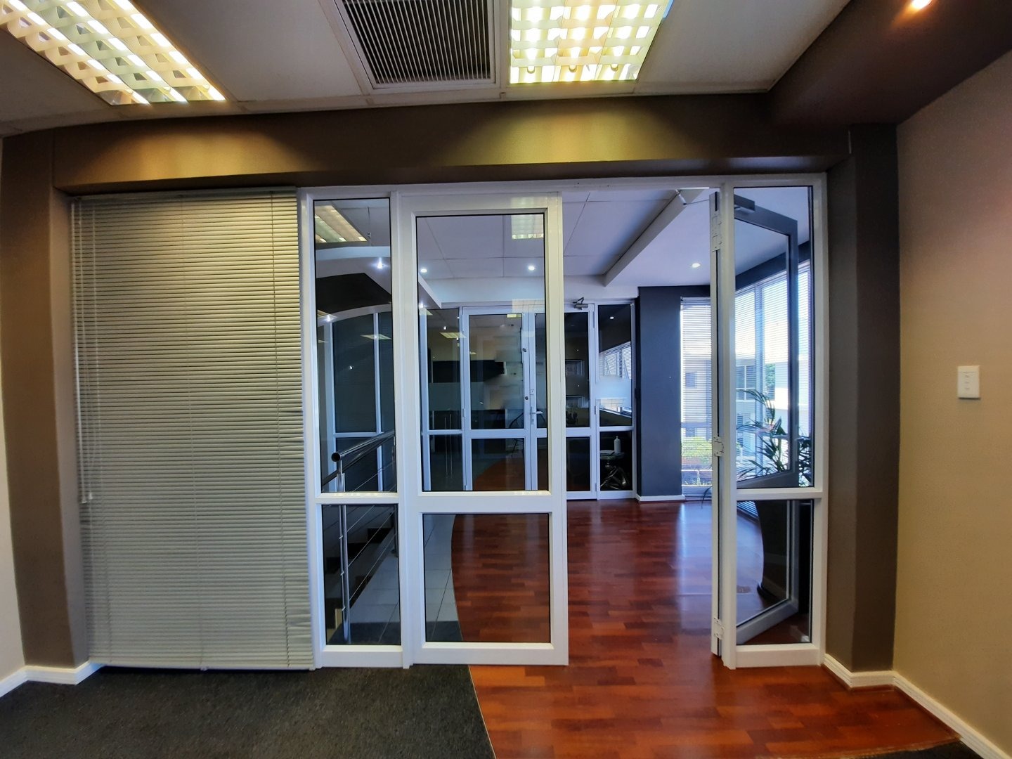 Fantastic central location in upmarket office park. This 129sqm of prestigious office space available to rent close to Gateway. This neat unit with smart finishes is on the first floor. It has a stylish fit out, great light and plenty of windows. There is currently a smart boardroom , an open plan area and 2 private offices. This can be re-configured as needed. There is a kitchenette and ablutions within the unit. Additional storeroom/s available.