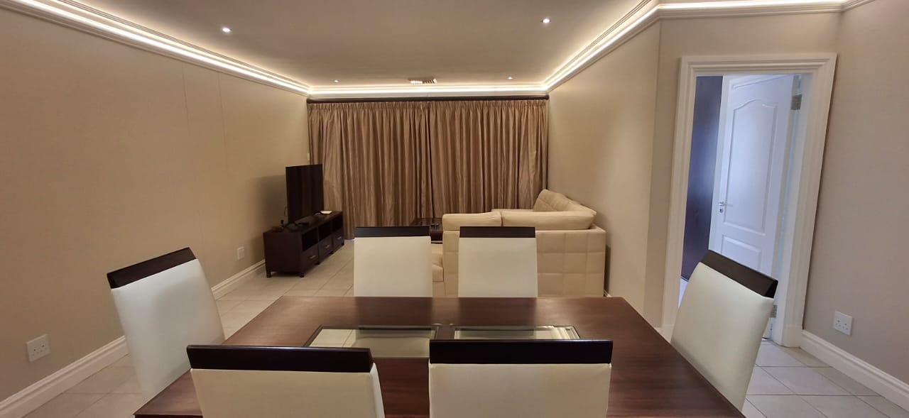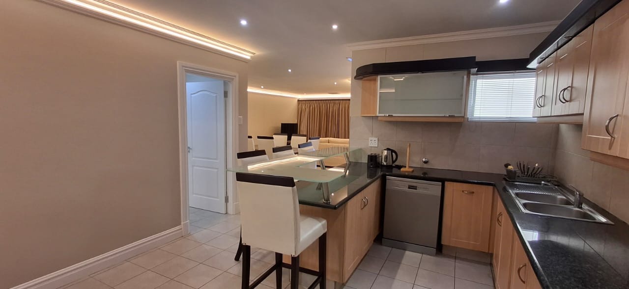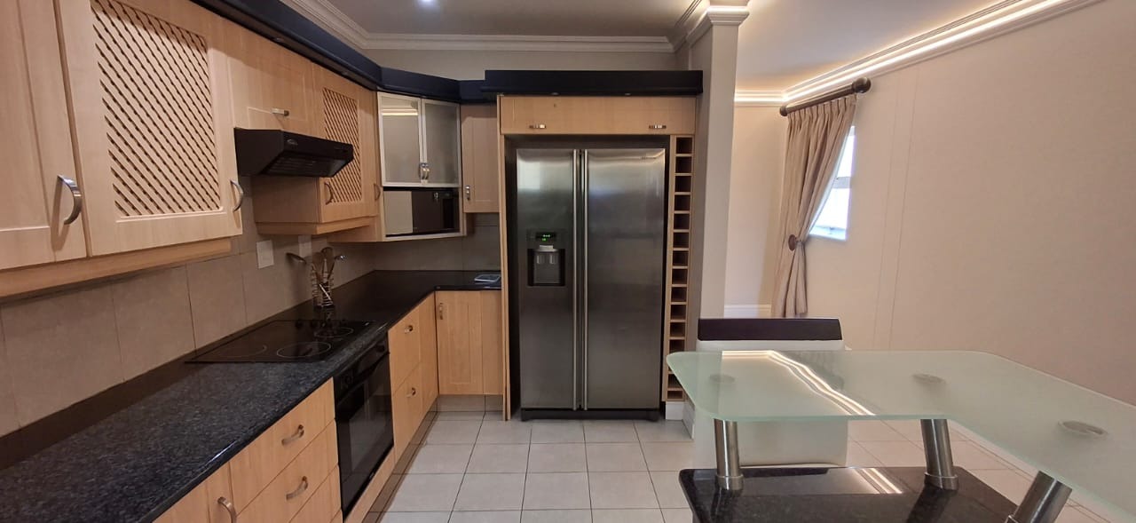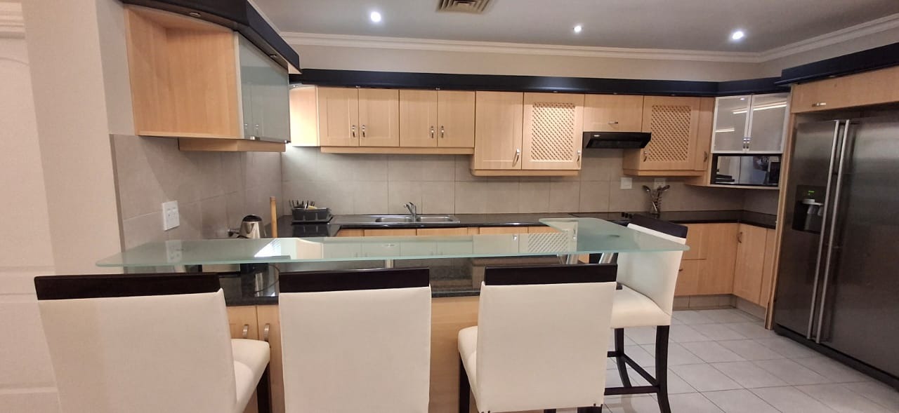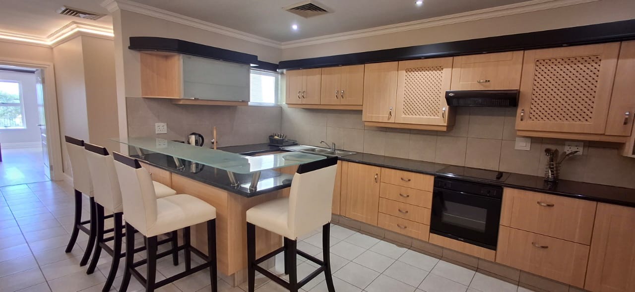 Discover modern coastal living in this contemporary 2 bedroom, 2 bathroom rental apartment in La Lucia, Umhlanga. The open plan layout seamlessly integrates a modern kitchen, dining area, and lounge, creating an inviting space. The kitchen boasts ample cabinetry, a built in oven, and a breakfast bar. Each of the two comfortable bedrooms features its own modern en suite bathroom, ensuring privacy. The apartment showcases neutral decor, elegant lighting, and durable tiled or wood look flooring, complemented by air conditioning and practical storage solutions.