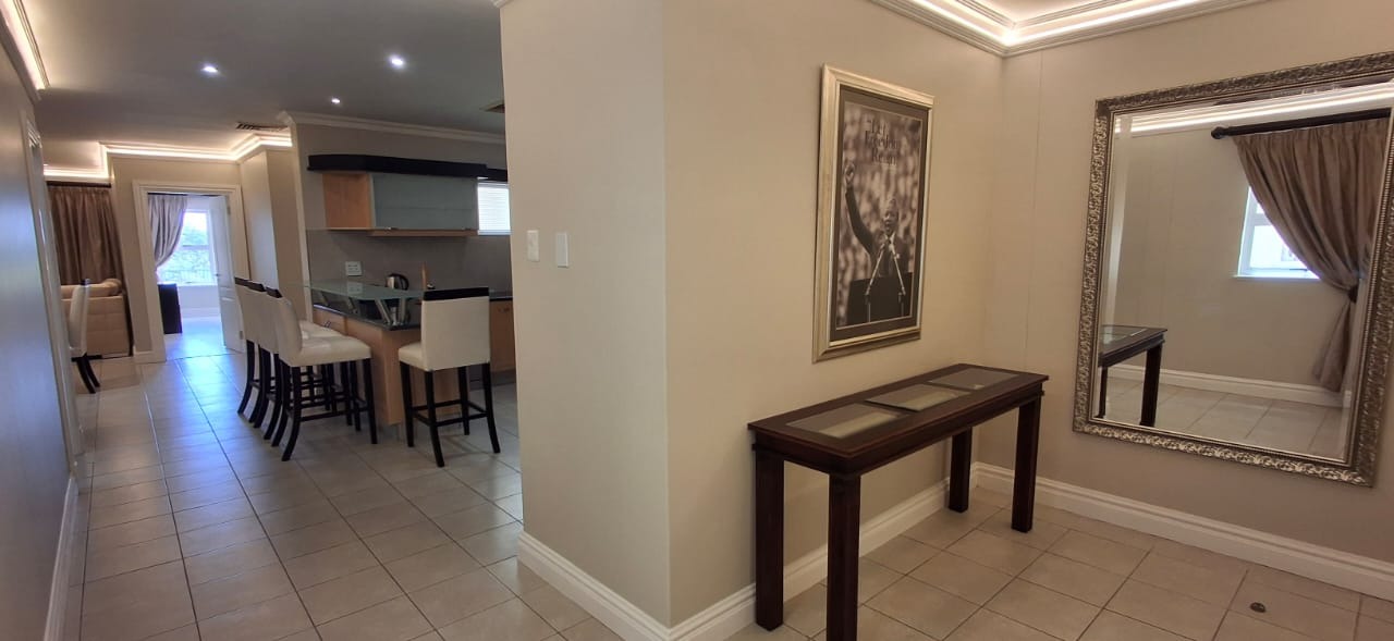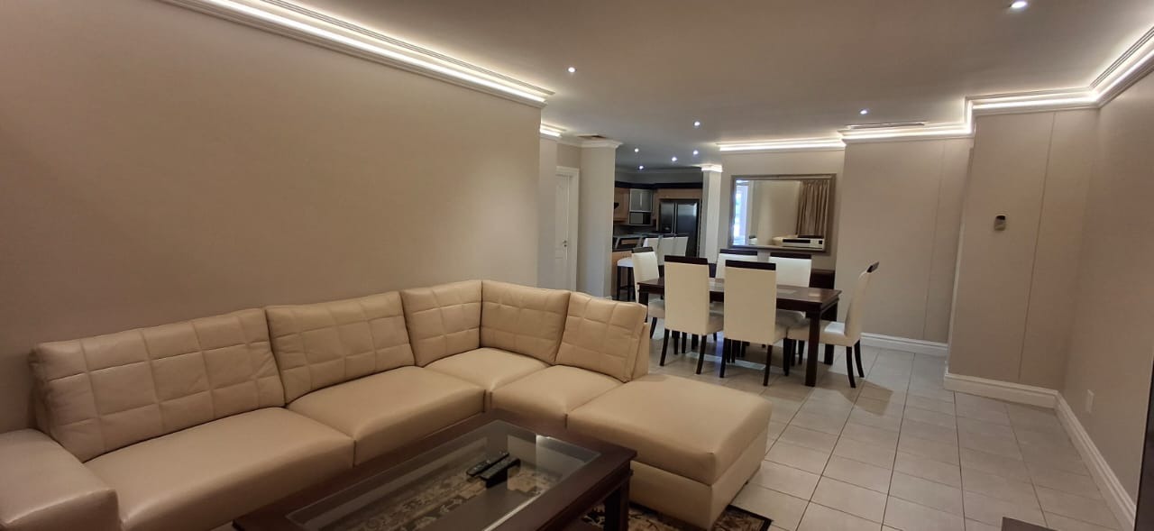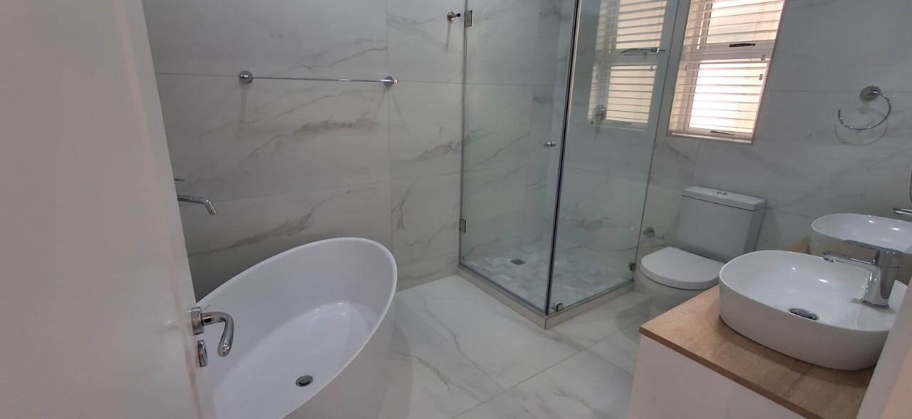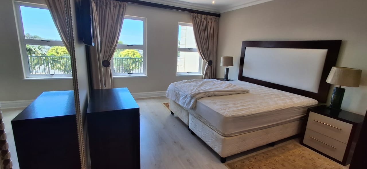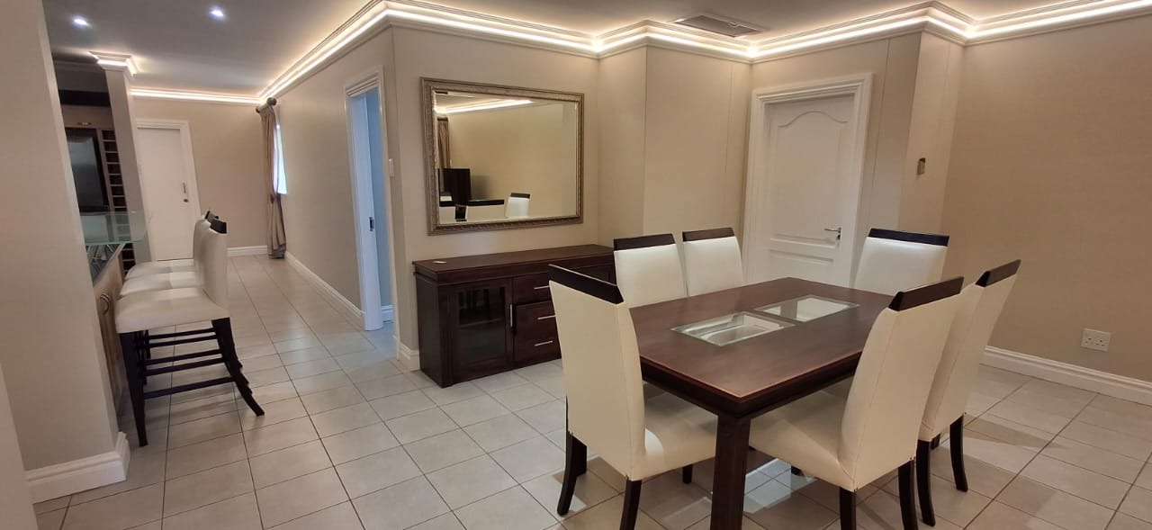 Discover modern coastal living in this contemporary 2 bedroom, 2 bathroom rental apartment in La Lucia, Umhlanga. The open plan layout seamlessly integrates a modern kitchen, dining area, and lounge, creating an inviting space. The kitchen boasts ample cabinetry, a built in oven, and a breakfast bar. Each of the two comfortable bedrooms features its own modern en suite bathroom, ensuring privacy. The apartment showcases neutral decor, elegant lighting, and durable tiled or wood look flooring, complemented by air conditioning and practical storage solutions.