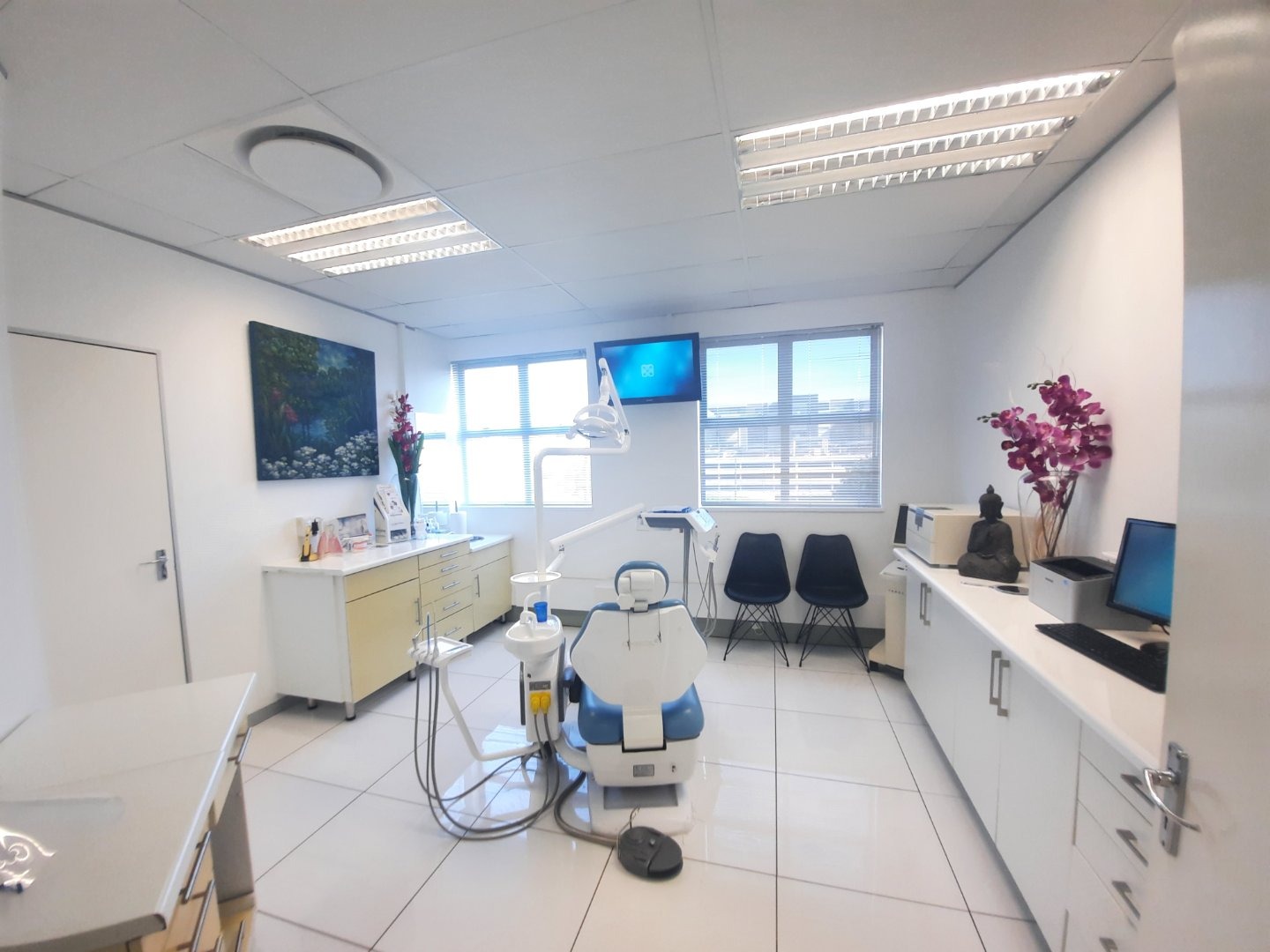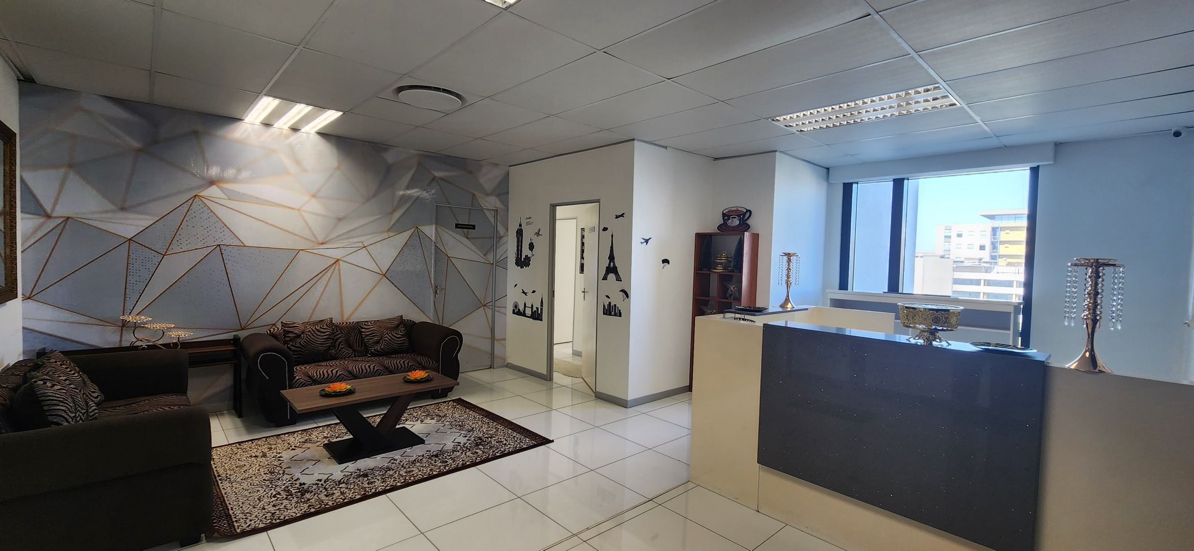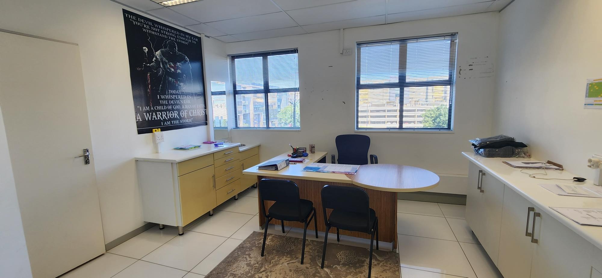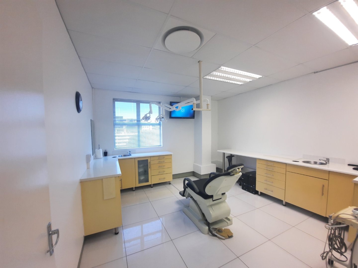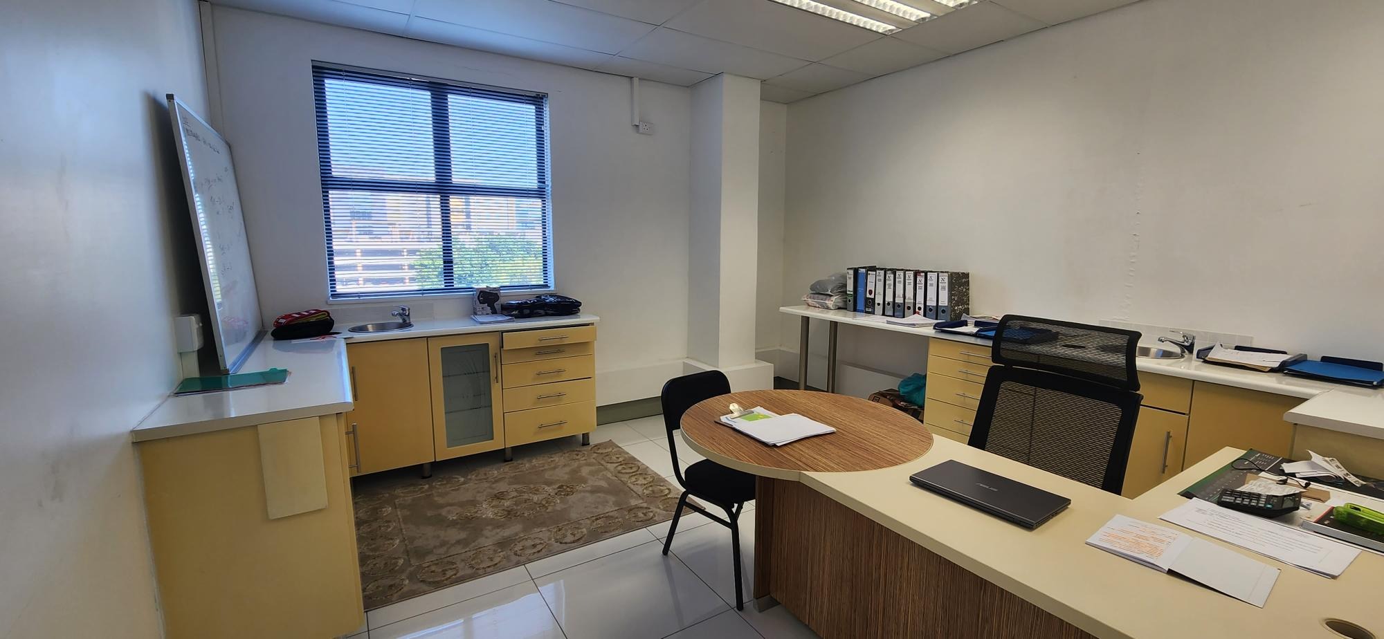 This stunning unit is impeccably fitted out and is ready for occupancy. The current layout has white tiles throughout and includes an impressive airy reception, 4 separate rooms, a supplies/ wash room, bathroom and separate ablution plus kitchen. There are additional common ablutions down the corridor.