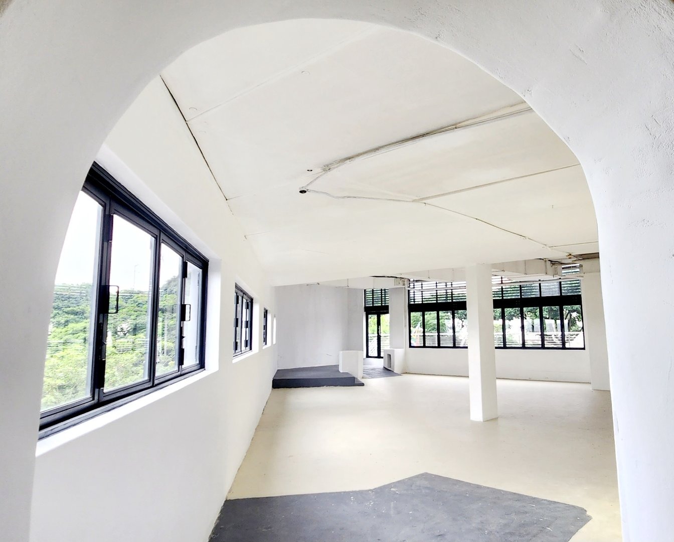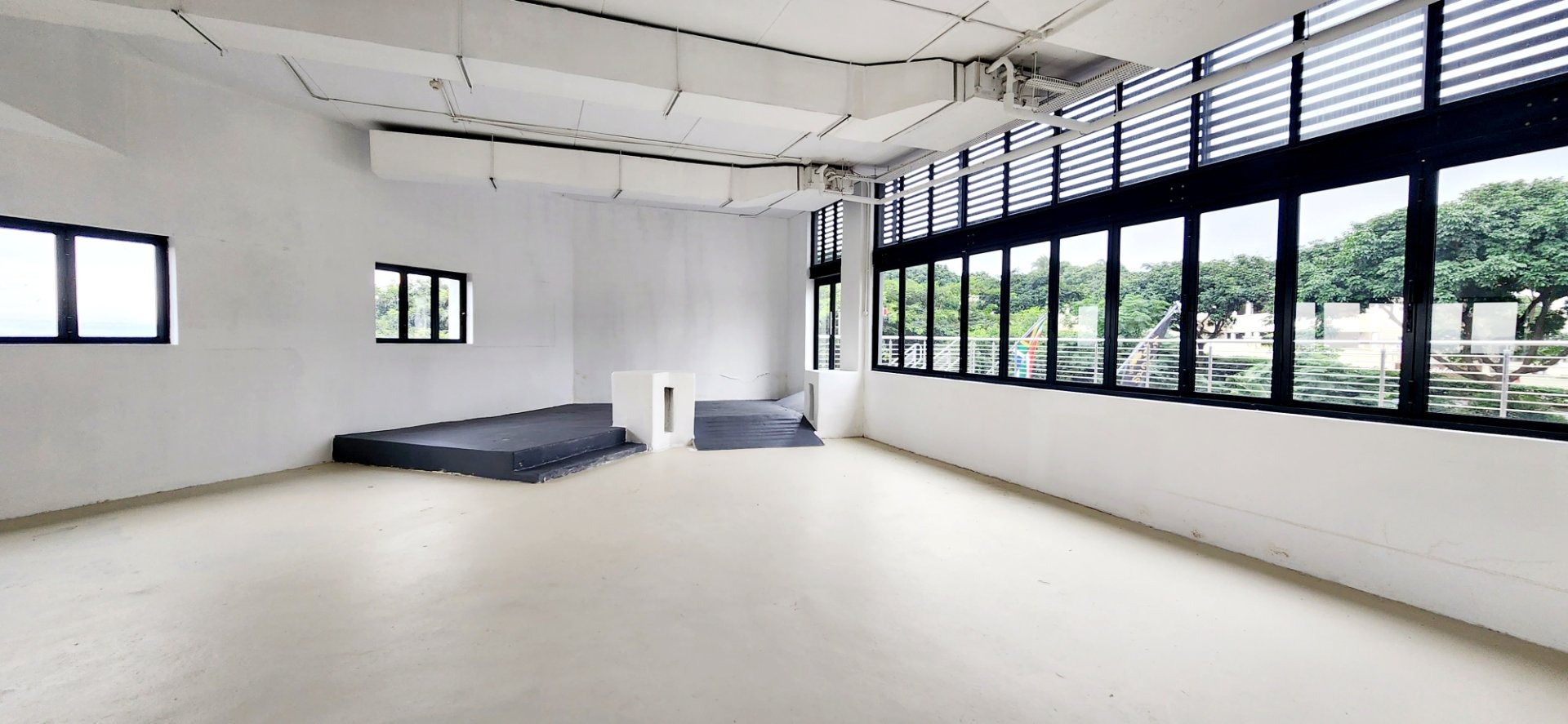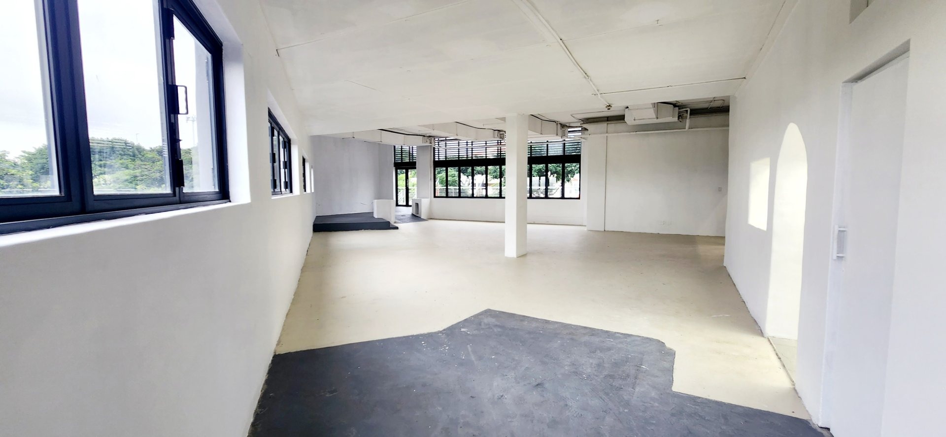 This unit has an uncover area of 210m². It is on the top floor with extensive windows offering a light and airy open space with a spacious deck of 67m². The deck is charged at a lower rental rate. It has a separate area for an industrial kitchen - with a private delivery entrance. There is also plenty of free customer parking in the carpark and in the basements below ( accessed by lift and stairs). There are plenty of common smart ablutions just outside the unit.