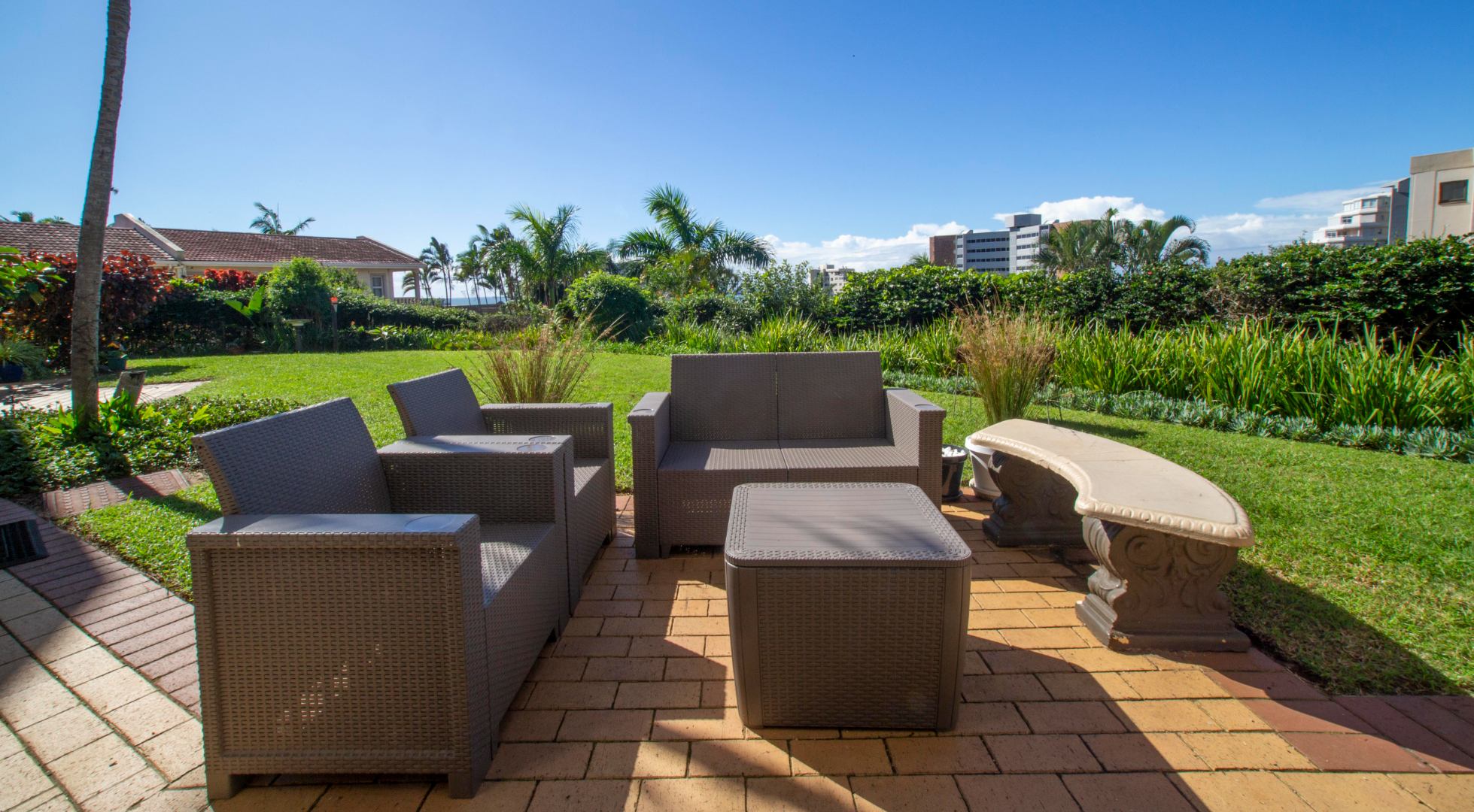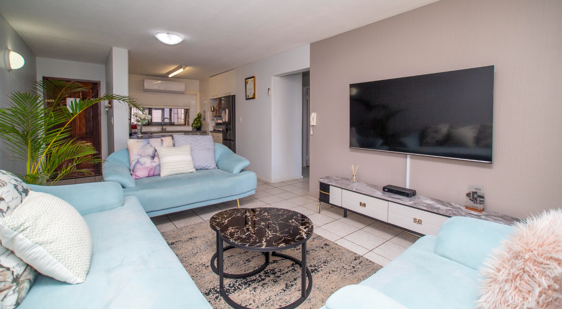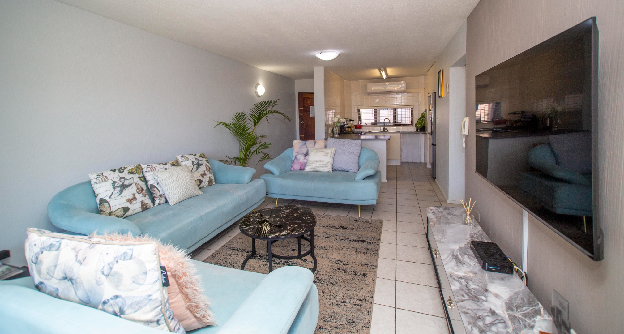 Hey there! Get ready to discover this lovely 2-bedroom, 2-bathroom apartment, perfect for a relaxed coastal lifestyle in Umhlanga Rocks. This 86 sqm space offers a comfy open-plan living area with modern light blue sofas, a sleek wall-mounted TV, and easy-to-clean tiled floors throughout. The kitchen is super functional with a modern dark stainless steel fridge, electric stove, and an air conditioning unit to keep things cool. You'll find a main bathroom and an en-suite in the master bedroom, both neat and tidy. Step outside and you'll find your own private oasis! This spot boasts a fantastic swimming pool, a covered patio, and a lush tropical garden – just imagine chilling out here with ocean views. It’s an ideal setup for anyone looking for a lock-up-and-go lifestyle or a cozy home where you can truly unwind. Plus, with one dedicated parking bay, you're all set. Living here means peace of mind, as it's part of a secure complex with an access gate. You'll also appreciate the security bars on the windows and security gates on the patio door, adding an extra layer of safety. Nestled in the vibrant coastal suburb of Umhlanga, this apartment puts you right by the beach, offering that wonderful seaside vibe. It’s a fantastic suburban location with everything you need close by. Key Features: * 2 Bedrooms, 2 Bathrooms (1 en-suite) * 86 sqm Floor Size * Modern Open-Plan Living Area * Private Swimming Pool & Garden * Ocean Views * 1 Parking Bay * Security Complex with Access Gate * Air Conditioning * Coastal Beach Location