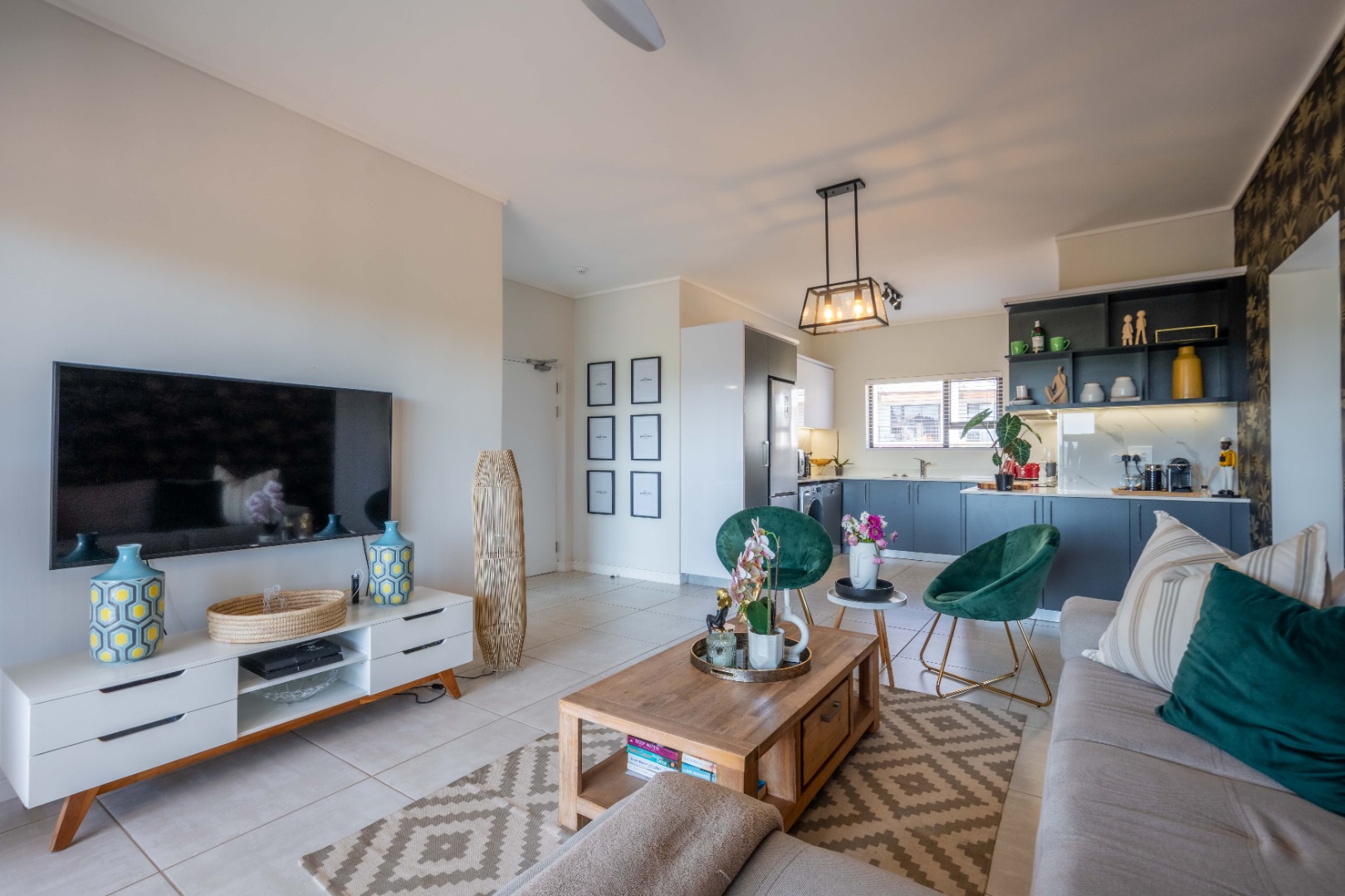 If you are looking for a spacious, modern and eco-friendly apartment in a prime location, look no further than this 3 bedroom, 2 bathroom top floor unit in the new IZINGA ECO ESTATE. This apartment boasts an open plan kitchen with high-quality finishes and a coffee station area, a dinette and a lounge that lead to a veranda with a built-in braai area.