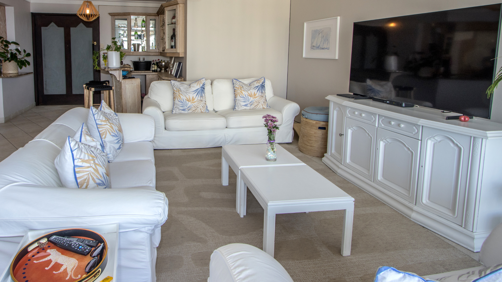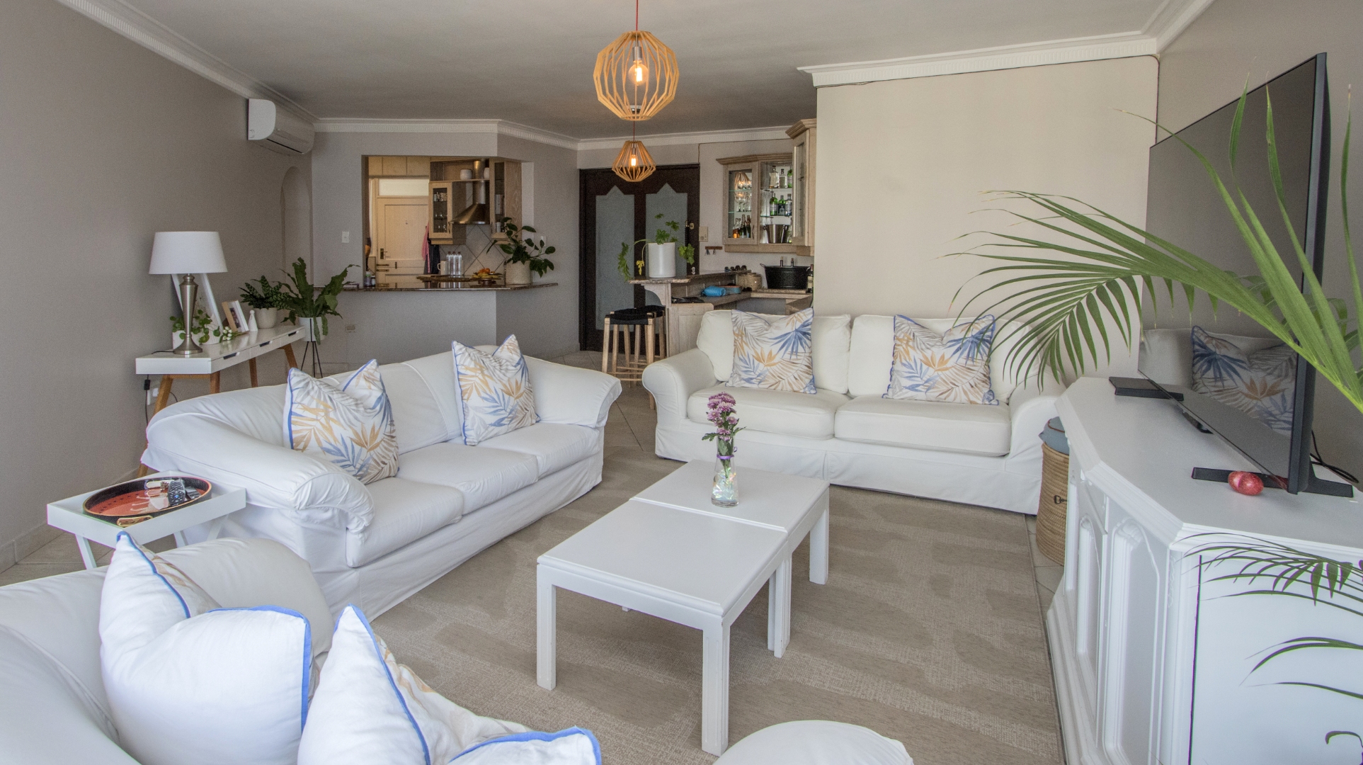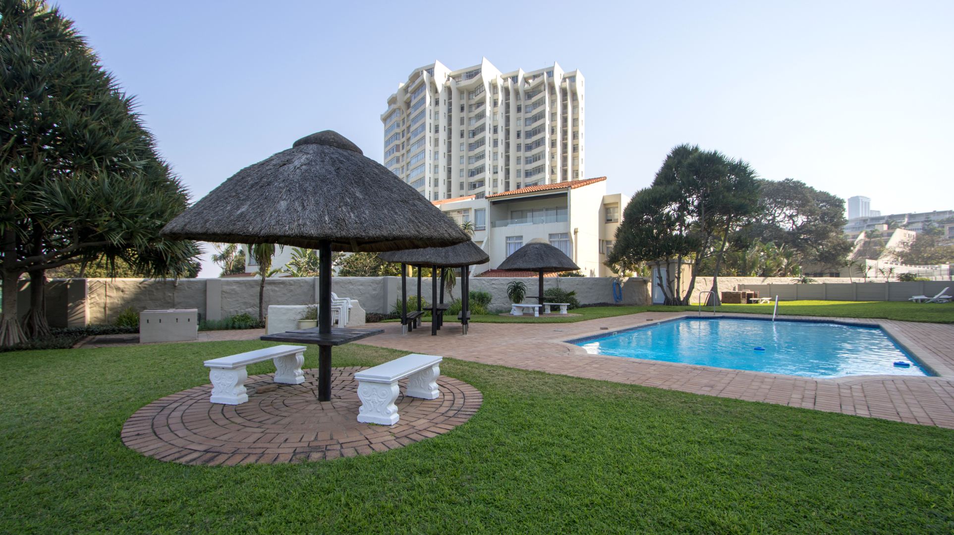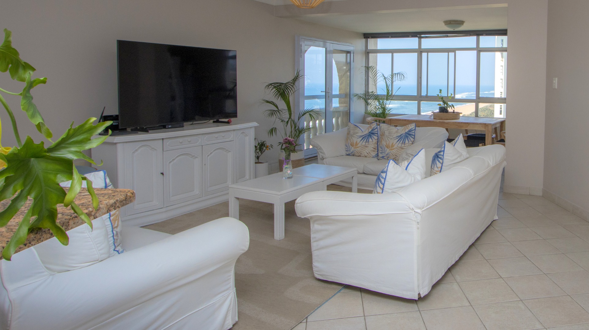 Discover exceptional coastal living in this spacious 157 sqm apartment available for rent in Umhlanga Rocks. Boasting three bedrooms and two bathrooms, including one en-suite, this residence offers comfortable and modern accommodation. The open-plan layout seamlessly connects the living areas, enhanced by abundant natural light and elegant crown molding. A highlight is the enclosed sunroom/balcony, providing panoramic, unobstructed ocean and beach views, perfect for dining or relaxation. The well-appointed kitchen features granite countertops, light wood cabinetry, and a stainless steel hood, catering to all culinary needs. Adjacent to the living space, a dedicated built-in bar area, also with granite countertops and extensive glassware storage, makes entertaining effortless. Tiled flooring throughout ensures practicality and easy maintenance, ideal for a beachfront property. This property is designed for a vibrant coastal lifestyle, suitable for professionals or families seeking a secure and convenient home. Residents benefit from access to a clean communal swimming pool, surrounded by lush green lawns and multiple shaded seating areas, including thatched umbrellas. A communal braai facility further enhances outdoor enjoyment, offering a perfect setting for social gatherings. Security is paramount, with 24-hour security, a security post, access gates, and an intercom system ensuring peace of mind within this security complex and estate. The building is wheelchair-friendly and features lifts for easy access. Situated in the desirable suburban area of Umhlanga Rocks, this waterfront property offers direct access to coastal and beach activities, making it an ideal location for those who appreciate sea views and a dynamic environment. Key Features: * 3 Bedrooms, 2 Bathrooms (1 En-suite) * 157 sqm Floor Size * Panoramic Ocean & Beach Views * Enclosed Sunroom/Balcony * Open-Plan Living with Built-in Bar * Modern Kitchen with Granite Countertops * Communal Swimming Pool & Braai Area * 24-Hour Security & Access Control * Wheelchair Friendly with Lifts * 2 Parking Bays