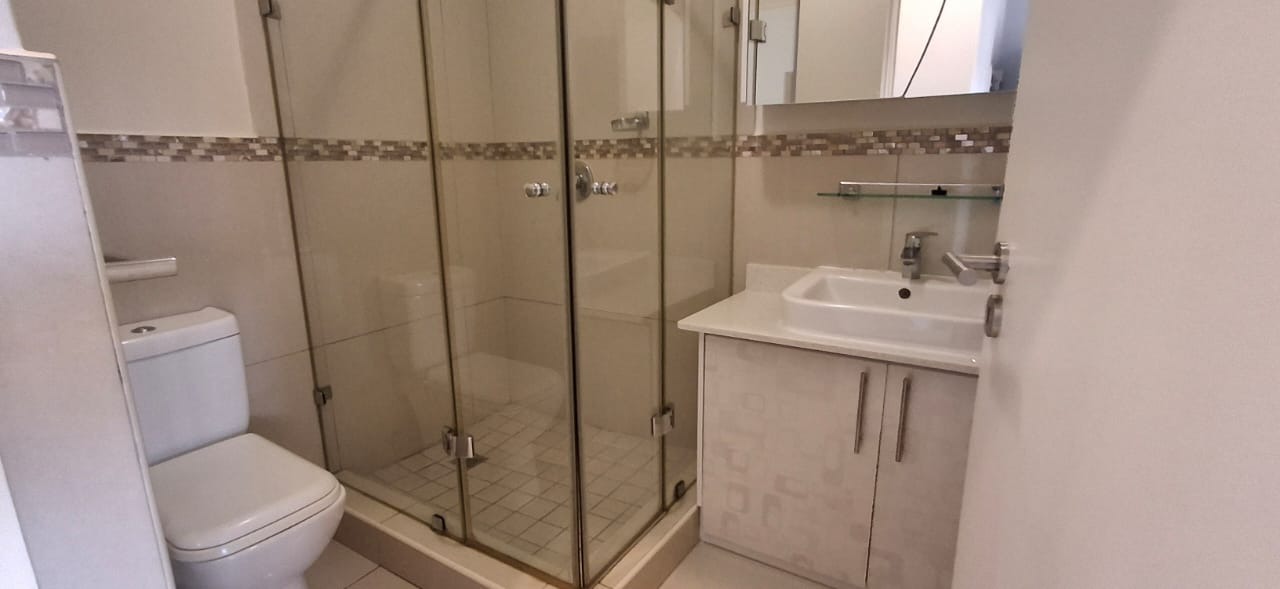 Both bedrooms are designed for relaxation, featuring built-in wardrobes (one with handy mirrored doors!) and a modern accent wall to add a touch of style. You'll appreciate the natural light streaming in through the windows, which also have security bars for peace of mind. The two bathrooms are equally modern, with clean lines, contemporary fixtures, and glass-enclosed showers – one of them is even an en-suite for extra privacy.
