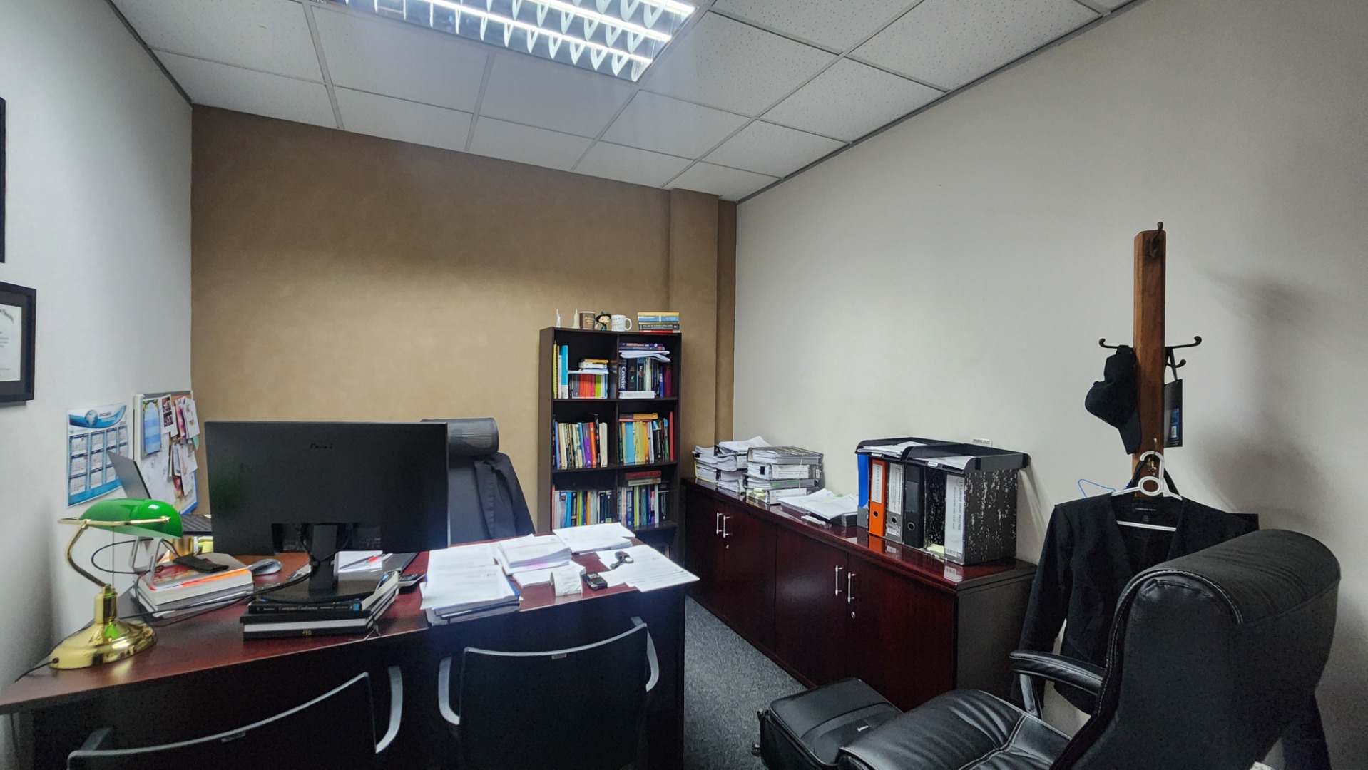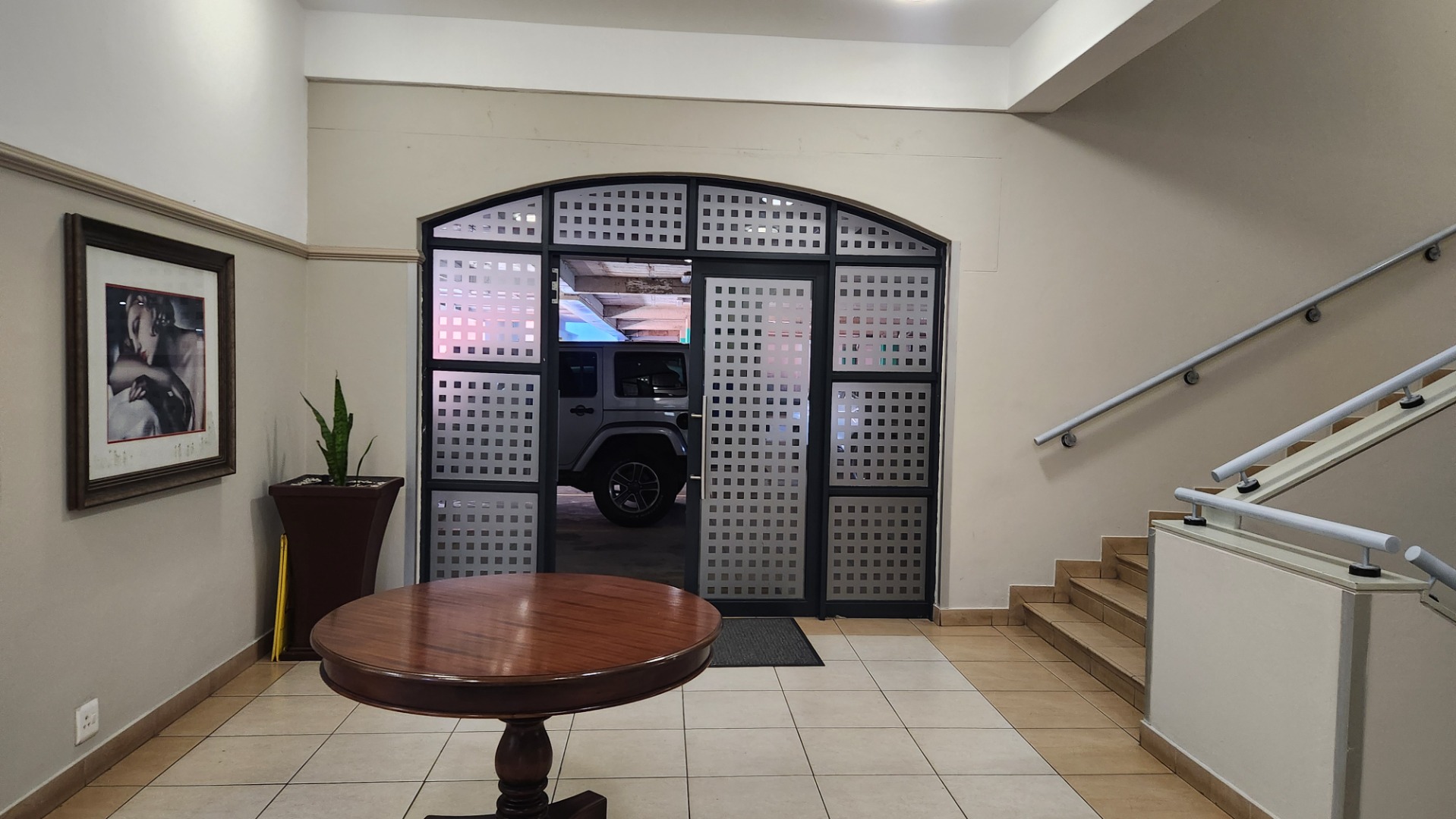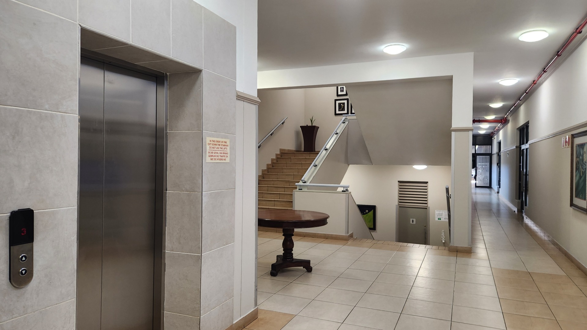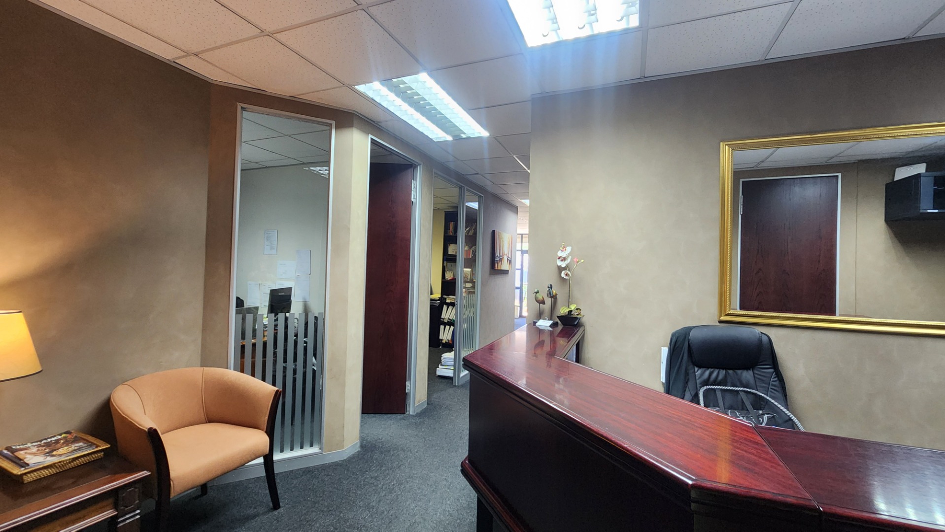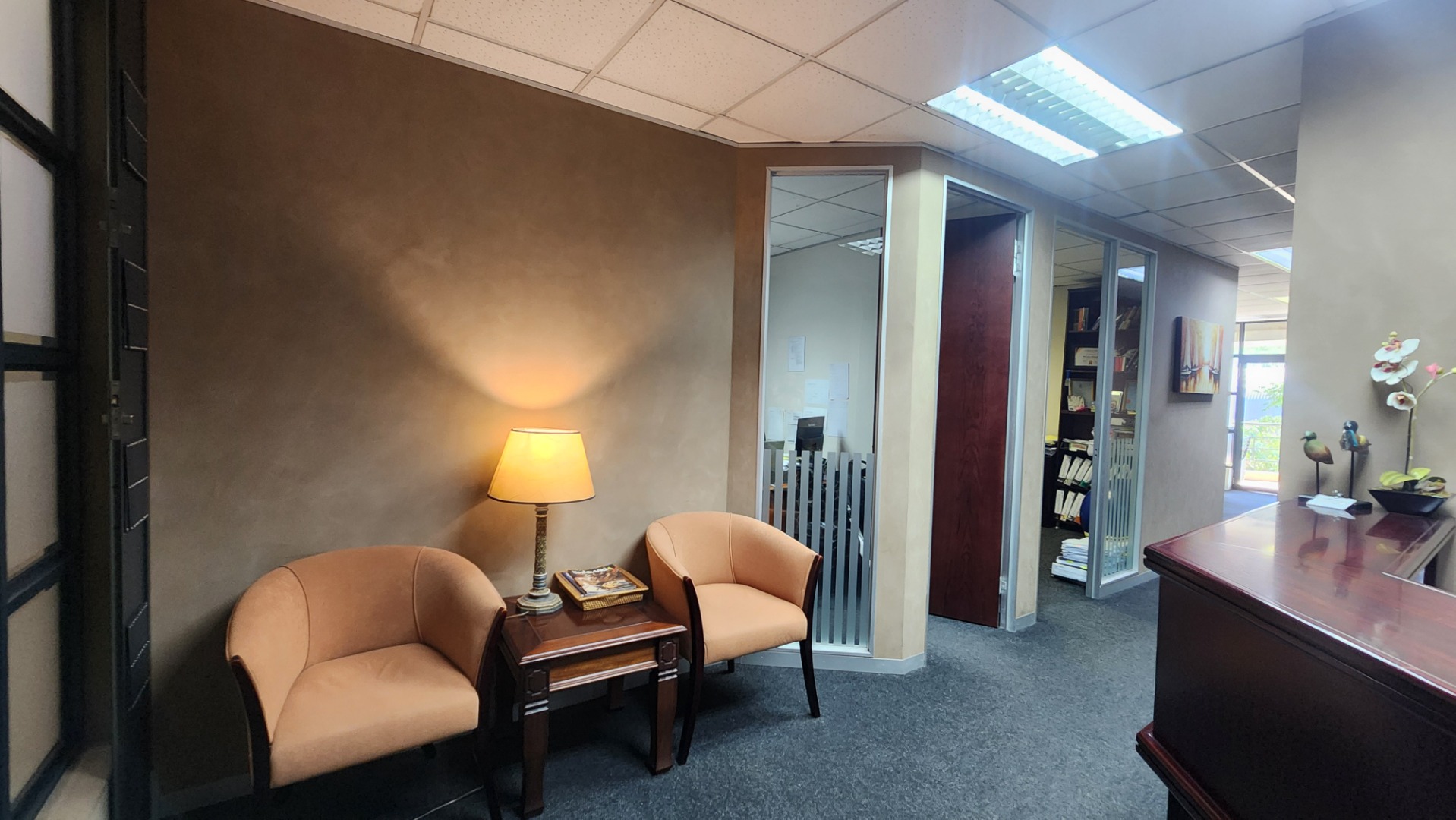 The well planned interior features a welcoming reception area, four private offices for focused work, a dedicated storeroom, and a well-appointed boardroom, perfect for client meetings and team collaborations. A convenient kitchenette and a private balcony enhance the workspace, complemented by a smart existing fit-out that allows for immediate occupancy. Should the new tenant require it the interior can be reconfigured. Communal serviced ablutions ensure convenience for staff and visitors alike. There is also a lift in the building for added convenience.