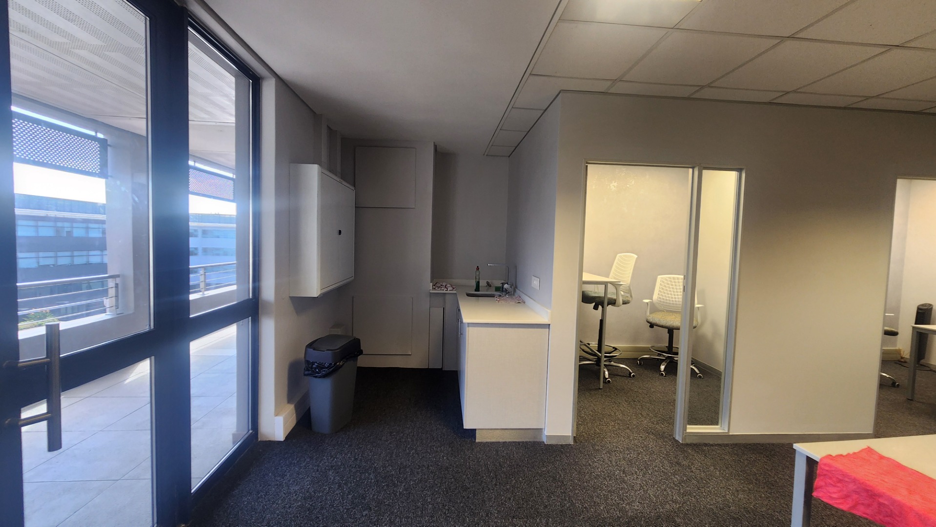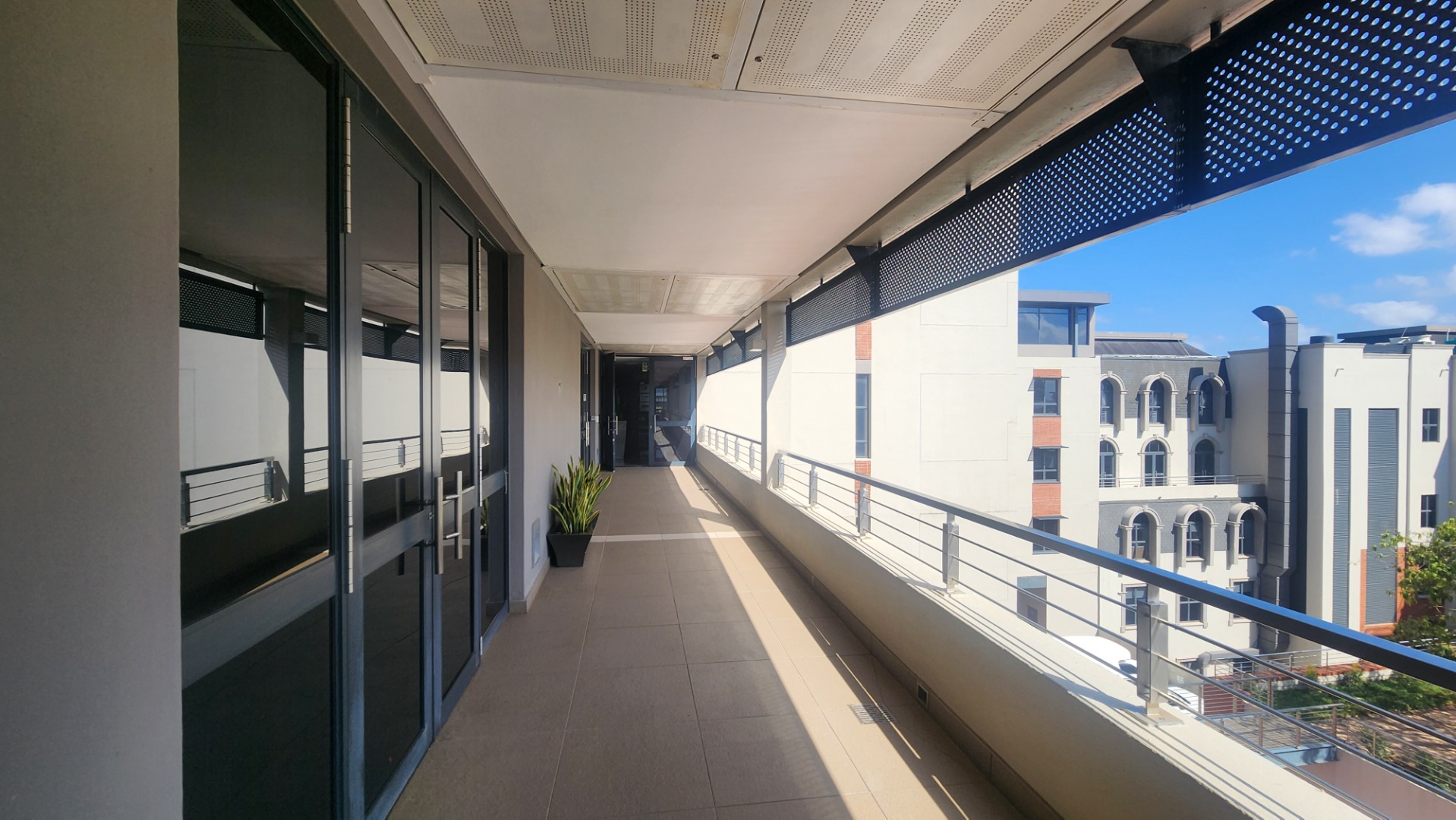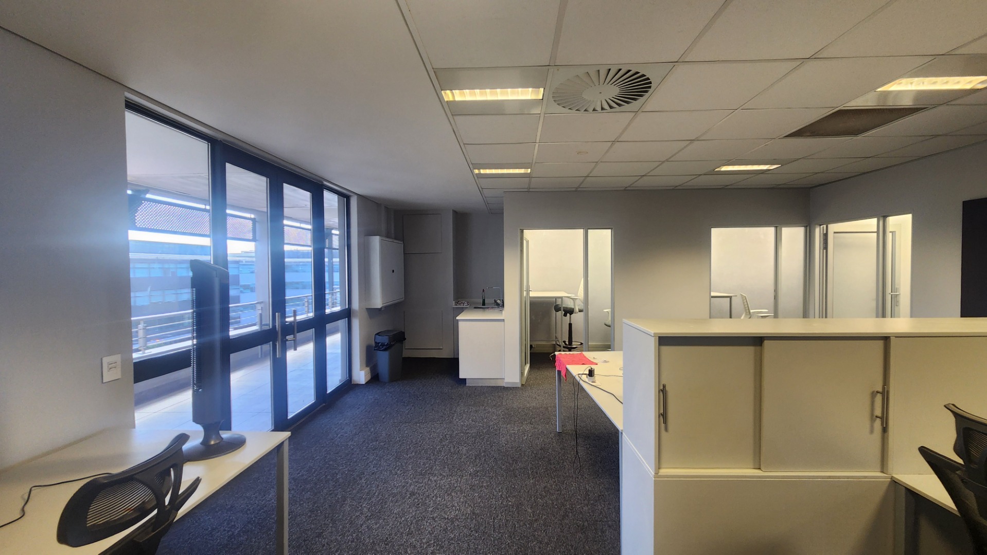 Offering a sophisticated and adaptable environment, this prime unit of 210m2 is perfectly suited for modern businesses. The smart fit-out includes a boardroom, private offices, smaller workspaces, and a spacious open-plan area. A convenient kitchenette and a lovely balcony enhance daily operations and provide refreshing breaks. The unit features comprehensive air conditioning. The ablutions are communal and kept impeccably tidy by cleaning services. The needs of the disabled are catered for.