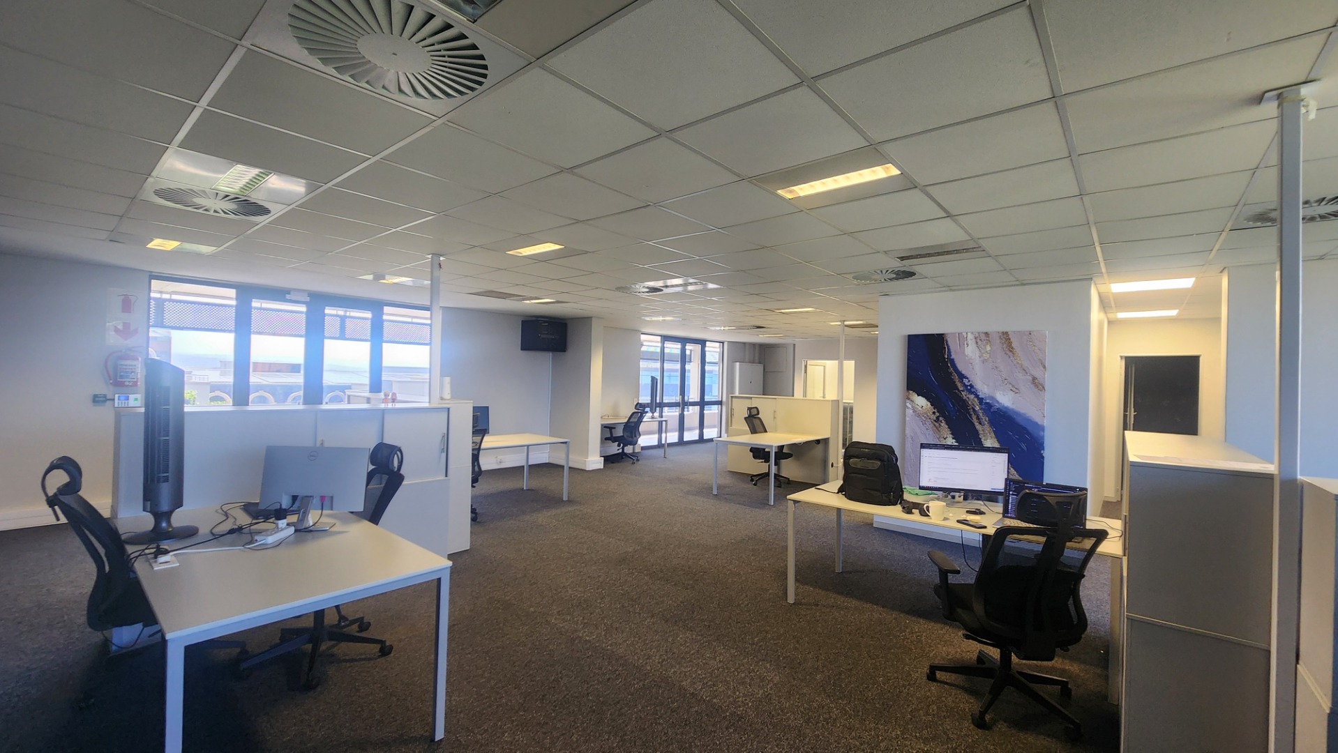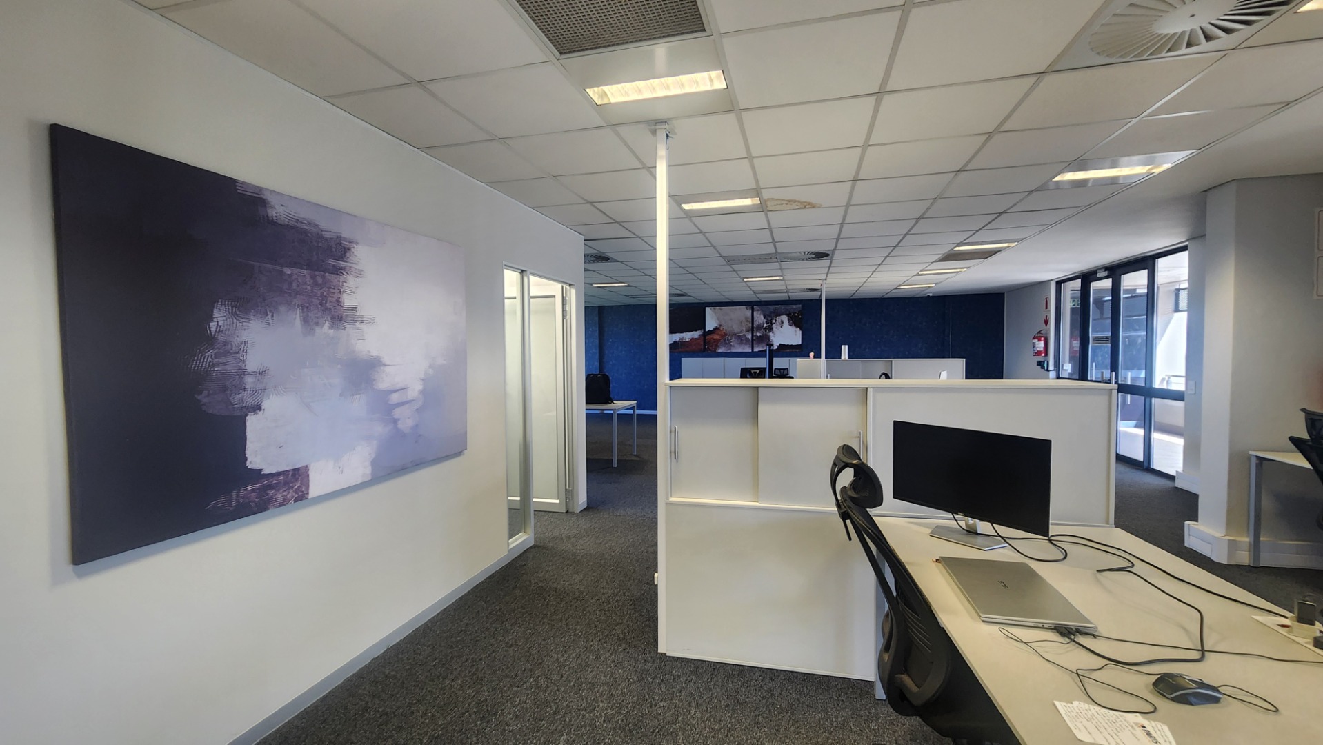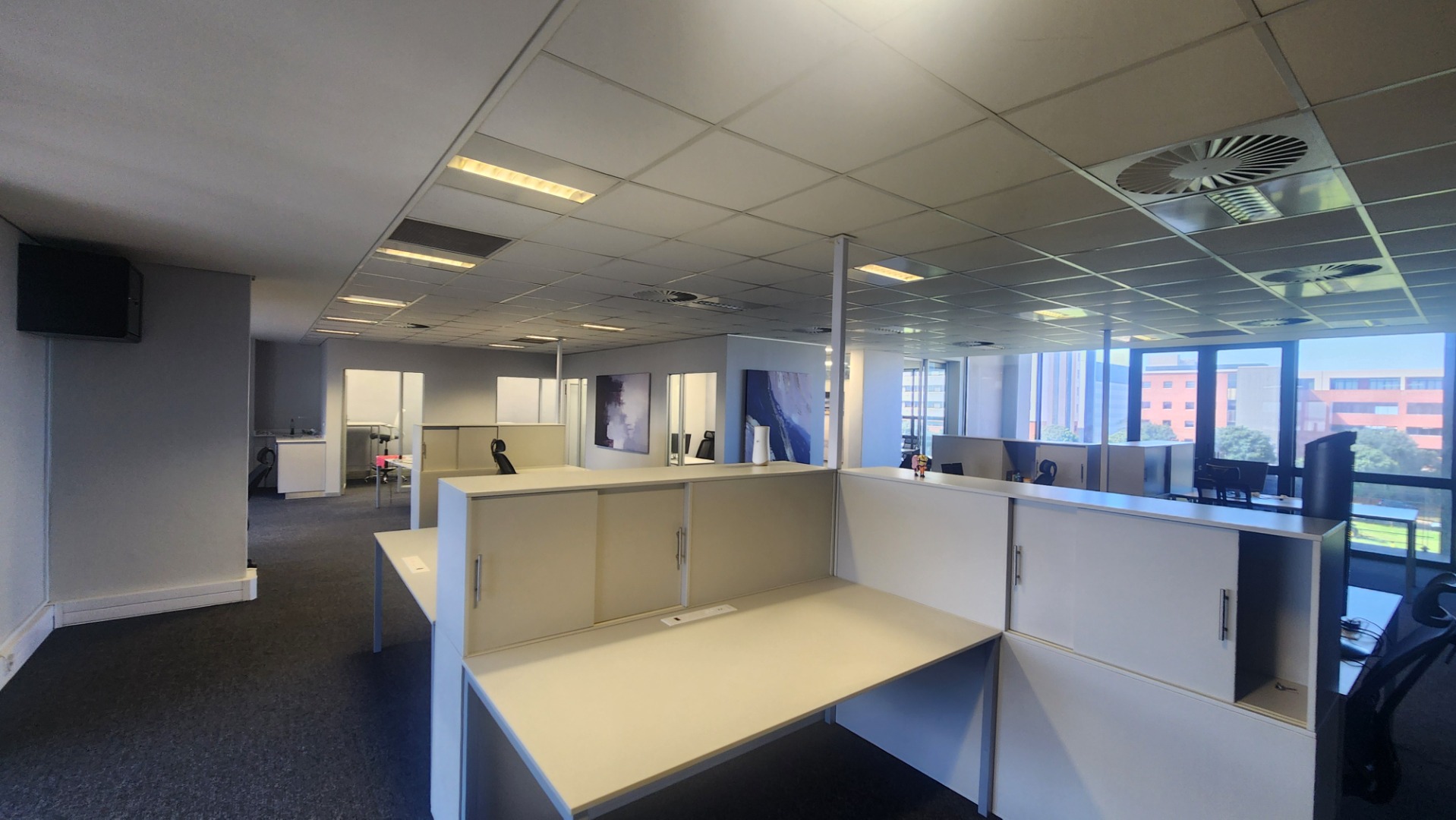 Offering a sophisticated and adaptable environment, this prime unit of 210m2 is perfectly suited for modern businesses. The smart fit-out includes a boardroom, private offices, smaller workspaces, and a spacious open-plan area. A convenient kitchenette and a lovely balcony enhance daily operations and provide refreshing breaks. The unit features comprehensive air conditioning. The ablutions are communal and kept impeccably tidy by cleaning services. The needs of the disabled are catered for.